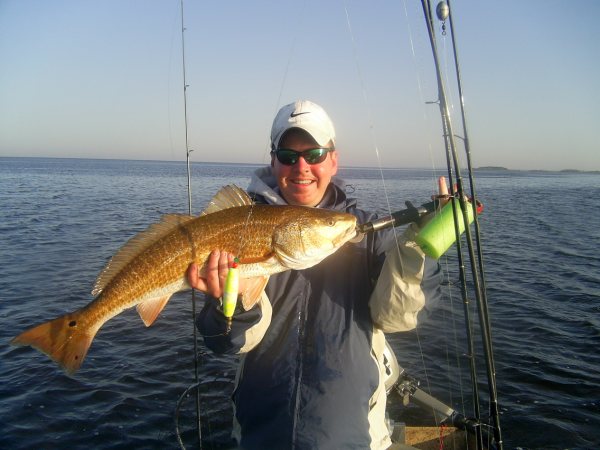 We picked up a couple of keeper trout in that area, then ran north. We picked up 7 more, making it one short of a 2-man limit. 9 trout in 9 hours. Slow. They ranged from 15"-18", nothing worth weighing but certainly worth frying up