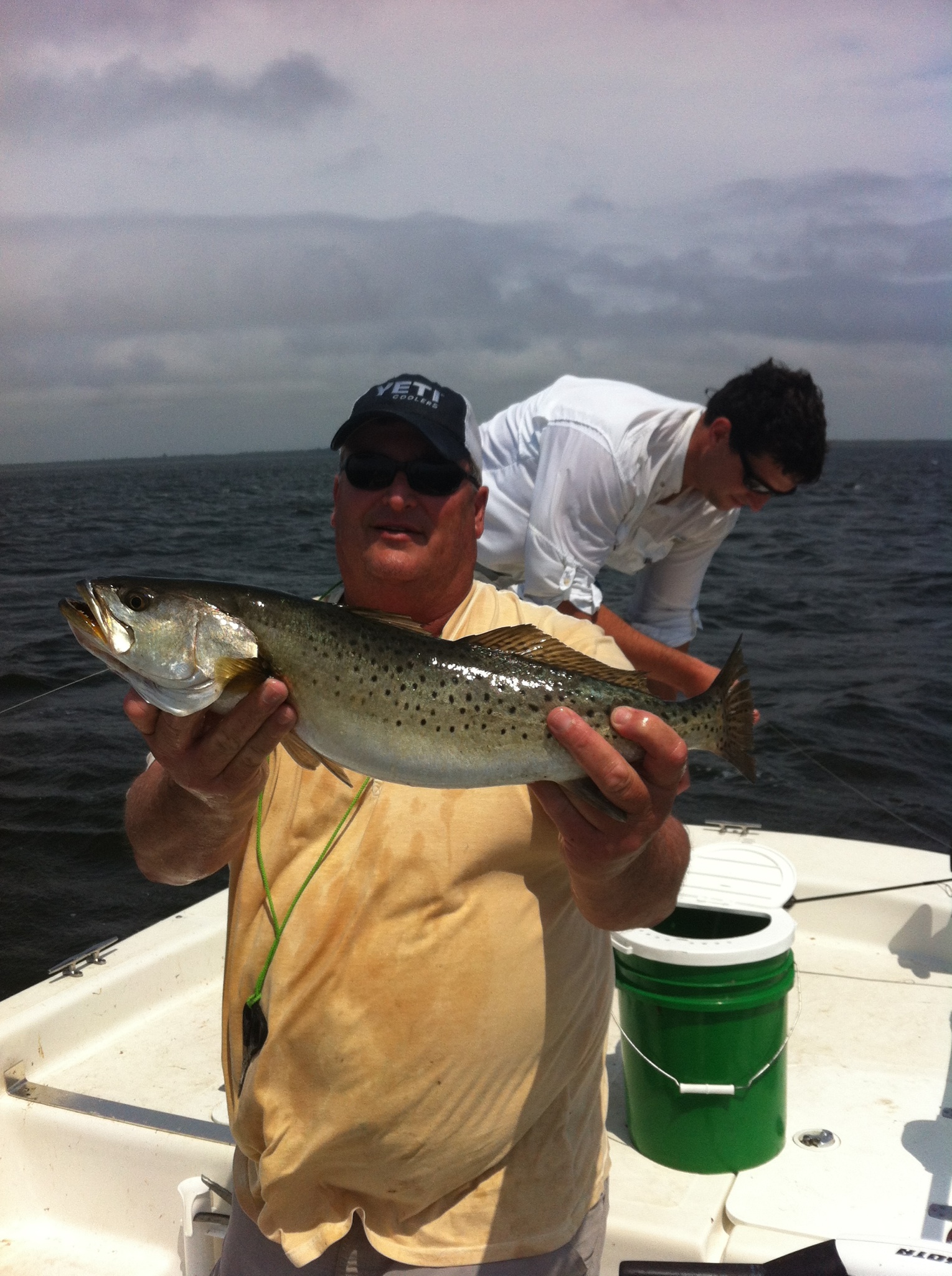Decided to head down with a boat full on Friday to hopefully miss the rain and wind that was scheduled for Saturday. We were fishing by 8:45 and water temperature was 78 degrees. Wind was howling around 20-25 knots but we had planned this trip for 2 months and would not be deterred. It ended up being a good decision because we picked up 11 keeper trout on our first drift. We rounded off the boat limit by 1100 and were out of the wind for the day. We caught most of the fish on live shrimp. We caught a few on paul brown suspended baits and very few on gulp. Fish seemed to be in 4-5 feet of water.