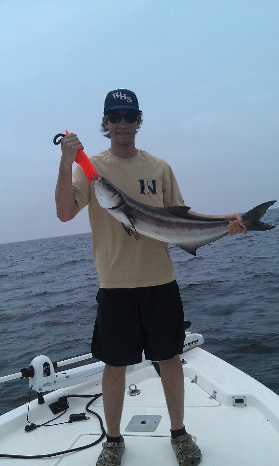 Special day of fishing for me and my step-son Devin Caldwell. This was a birthday gift I set up back in Nov to take Devin on a guided in-shore fishing trip. So I work out a trip with my long time friend Kevin Hough (2cond Place in the Red Trout Shootout) Kevin is not a licensed guide nor does he guide at all for an income. But if he ever wanted to, he is MORE than qualified! We launched from the Lighthouse at about 9:30 where we found a welcoming weather condition! Started out picking up a few Rock Bass at a close in rock pile. Then headed East to some of Kevins top secret fishing spots. Our plan was to fish for Rock Bass and what ever would bite until about 2:45 then head to the shoreline and fish the high tide for some big Reds. As soon as we got to the Rock Bass hole we were all reeling in big Rock Bass one after another. Then all of a sudden I hooked something bigger that was stripping line off my reel! Oh man a COBIA! fight him for 10-15 minutes and finally got him in the boat.Image Dang! too short! Just as soon as we released my Cobia Devin's line started stripping! Another Cobia! Image We end up catching 5 or 6 Cobia (All Short) but fun none the less! Kevin caught a nice TroutImage We caught 40-50 Rock Bass, 3-4 Small Grouper, a FlounderImage at about 2:40 we started making our way to the shore line to try to find some Reds. Fishing the incoming tide in about 1-2 feet of water the bite was pretty slow. We were all three using Skitter Walk top water plugs, but the floating grass kept us from being able to work the bait as it was intended. I switched over to my favorite rig "The Cajun Thunder". Working it behind the boat as Devin and Kevin were casting to the shoreline, the florescent orange cork disappears! I set the hook and was pretty sure I had a decent size Red, I reel the fish to the boat without much of a fight, but once the fish saw the boat it changed its mind on wanting to come on-board. It took a few feet of line in the process but I managed to turn it around. Kevin grab the net and dipped up the biggest Trout ever for me!!ImageWe really did not want to leave the "just now getting good Redfish bite" Ut oh we gotta go, too late the storm is right on top of us! Kevin points the boat to a nearby island and we hunker down for about 20-30 minutes hoping we are spared from a direct lightning strike! Storm blows over enough for us to make it back to the boat ramp safely. Wow what a day! 40-50 Big Rock Bass, 2 Trout, 3 Redfish, 1 Flounder, 3 small Grouper, 5-6 Cobia Thank you Kevin for a wonderful birthday gift to my step-son Devin!!