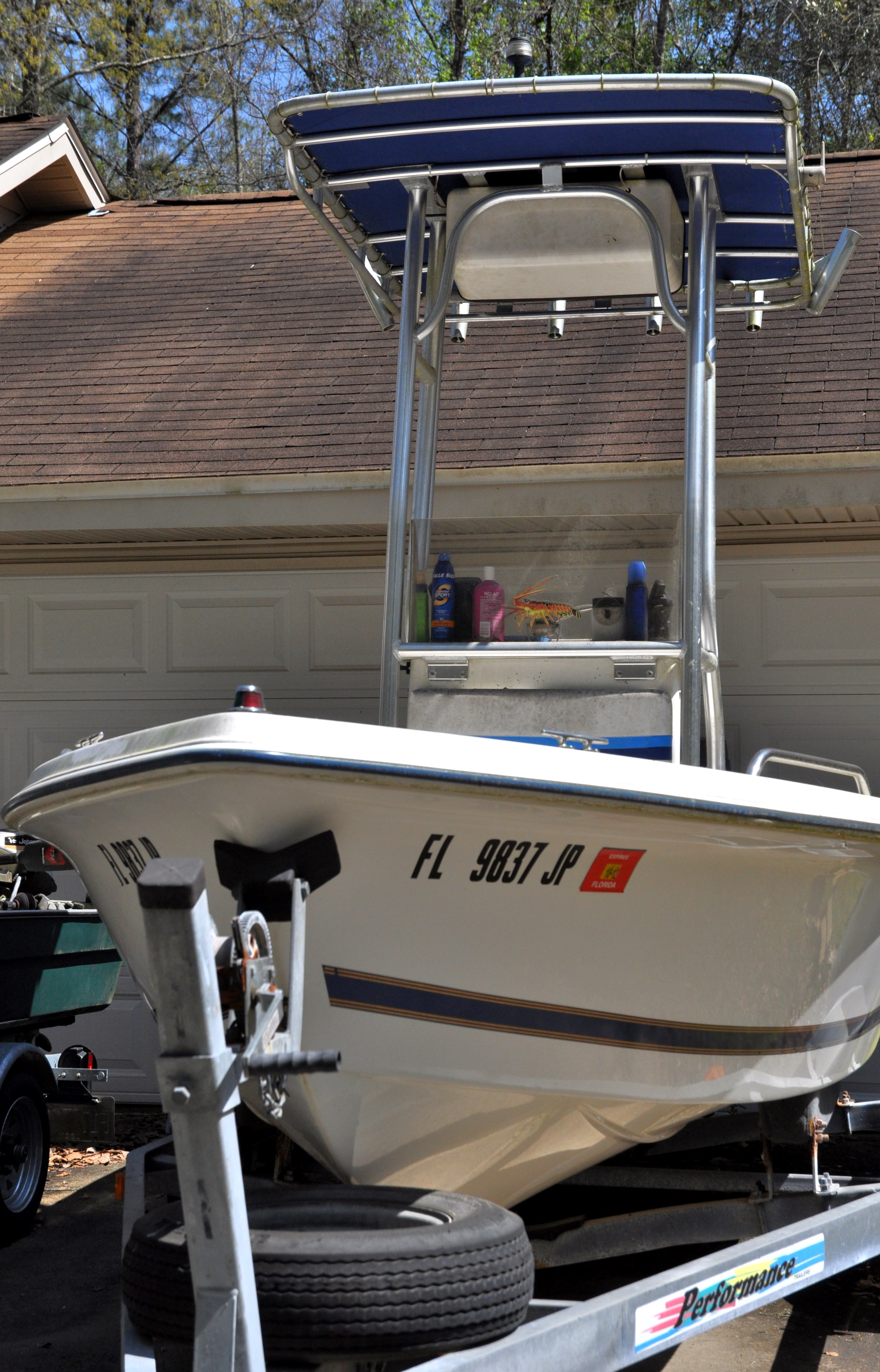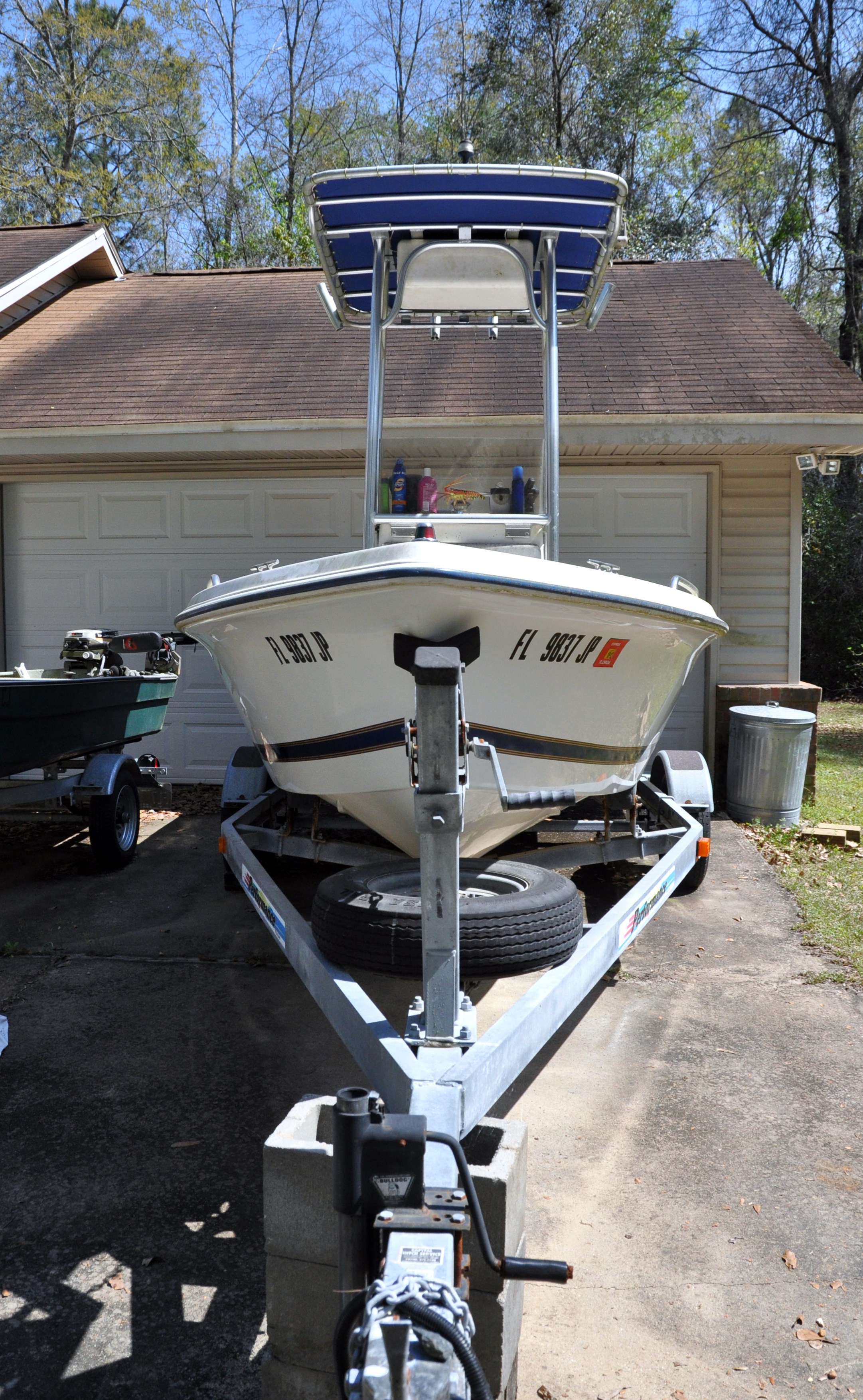 Just a few more words about my beauty-she will go in about 10 inches of water, but has enough vee to go offshore grouper digging-I have had her out to k-tower many,many times,and fish the oar reefs out there all summer long. I put in at St. Marks park, from there to k-tower is 26 miles and move around all day, and get back--extremely economic boat to run --32 gal. tank.