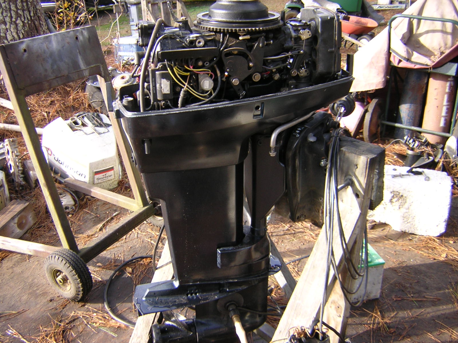 THIS A GREAT RUNNING MOTOR AND HAS ALL WIRING HARNESS AND CONTROLS FOR IT.IT IS A 20" SHAFT MOTOR WITH NEW CARB KITS AND NEW WATER PUMP INSTALLED.ASKING $1100.00 OR BEST CASH OFFER.MOTOR IS A FRESH WATER ONE SO NO CORROSION ON IT.IT IS LOCATED IN GA BUT NOT FAR FROM THAT AREA.ANY QUESTIONS CALL MY CELL PHONE 404-456-1726 AND ASK FOR JIM.THANKS