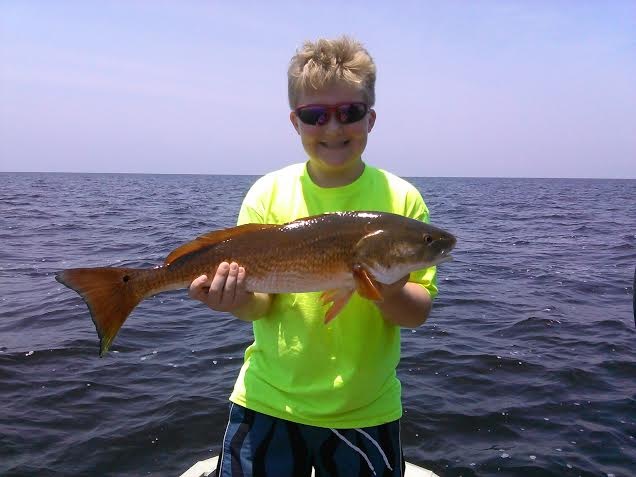 With the entire gulf wide open, they feel the need to ease right on up and start fishing. I manage a few more trout and decide to move on. We get to the second spot where Zach is met with this nice red....