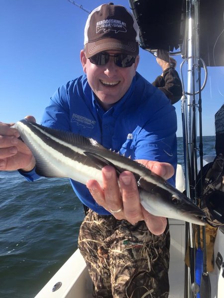 Caught this little guy on a bait rig! Water temp off shore was 72-73 degrees and there is bait everywhere.
