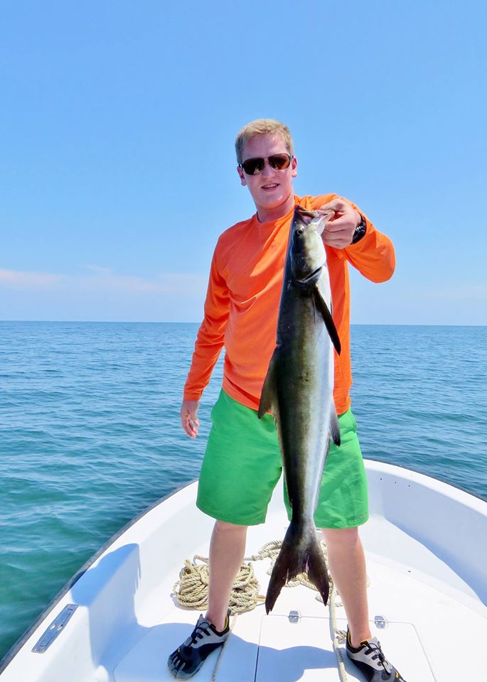 Outside of the feeding frenzies we didn't have incredible action at our spots, but did manage to tag one short cobe pretty quickly and then right before running to the scallop grounds landed a single keeper.
