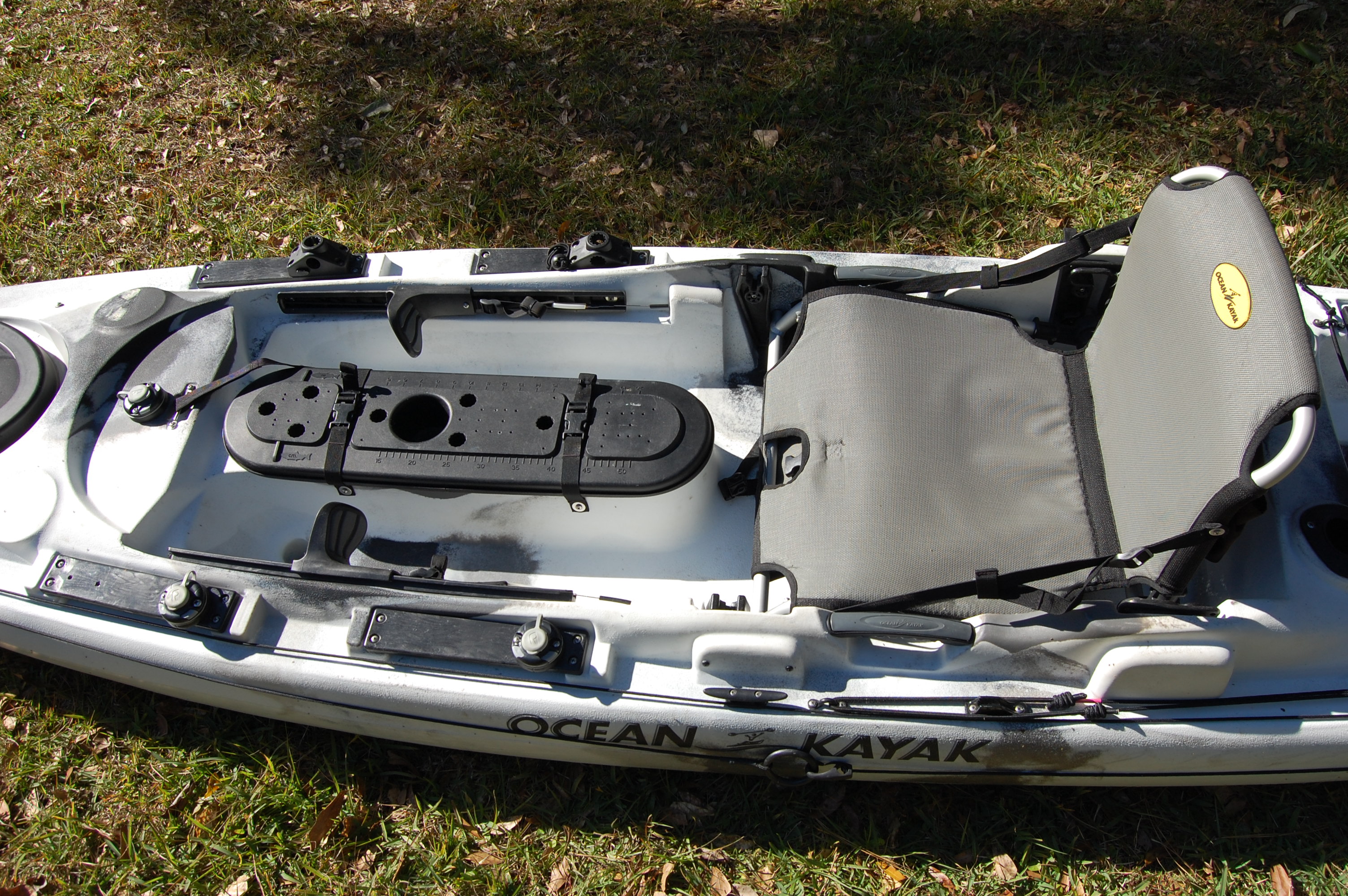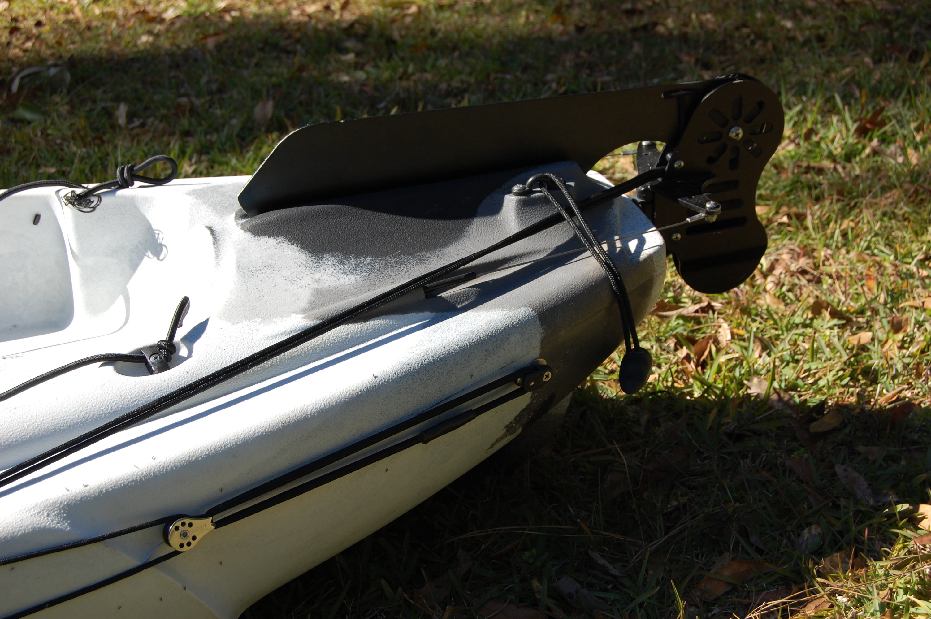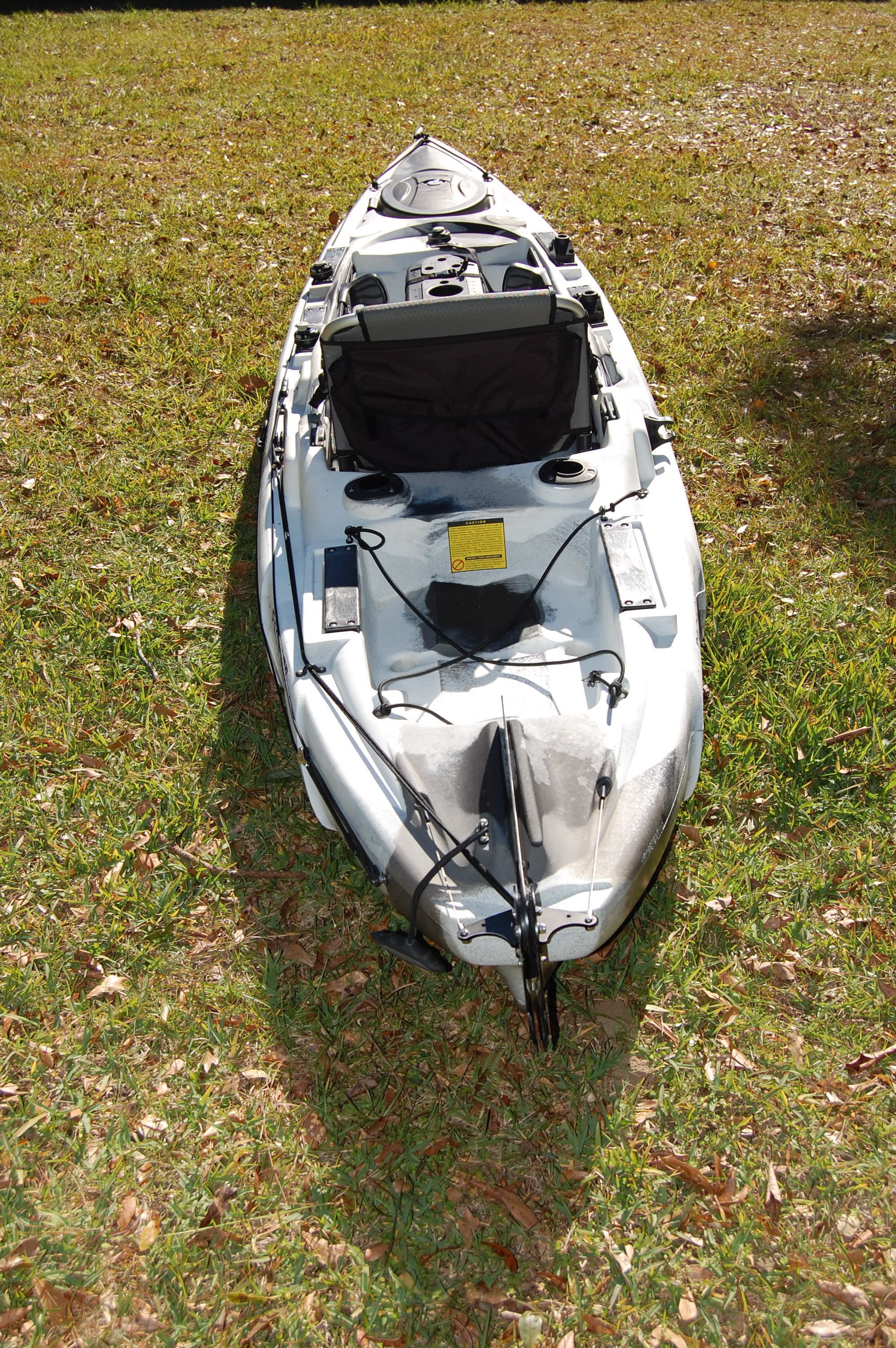 Ocean Kayak Big Game Prowler II. Has rudder kit (rudder cables in excellent condition with no rust), five rod holder bases: two for Scotty, and three for Railblaza (rod holders not included), and anchor trolly. Boat is in excellent condition and well cared for. Retail is $1,300 plus rudder kit which runs $225 through AKC. Selling price is $800. This is a perfect kayak for inshore fishing and creeks. Very comfortable and stable (I can easily stand in it) and aptly described by Ocean Kayak as a "battleship".
