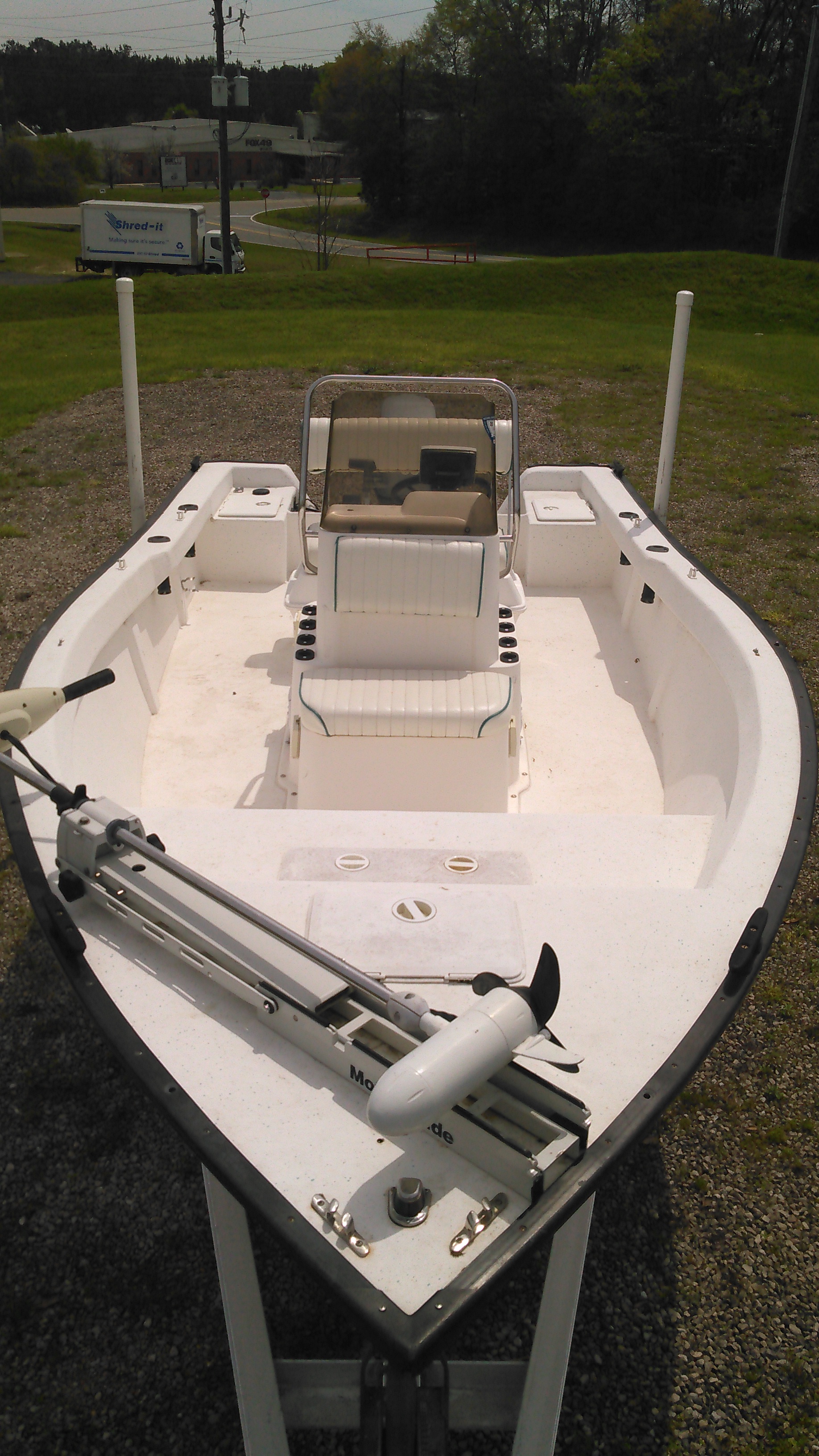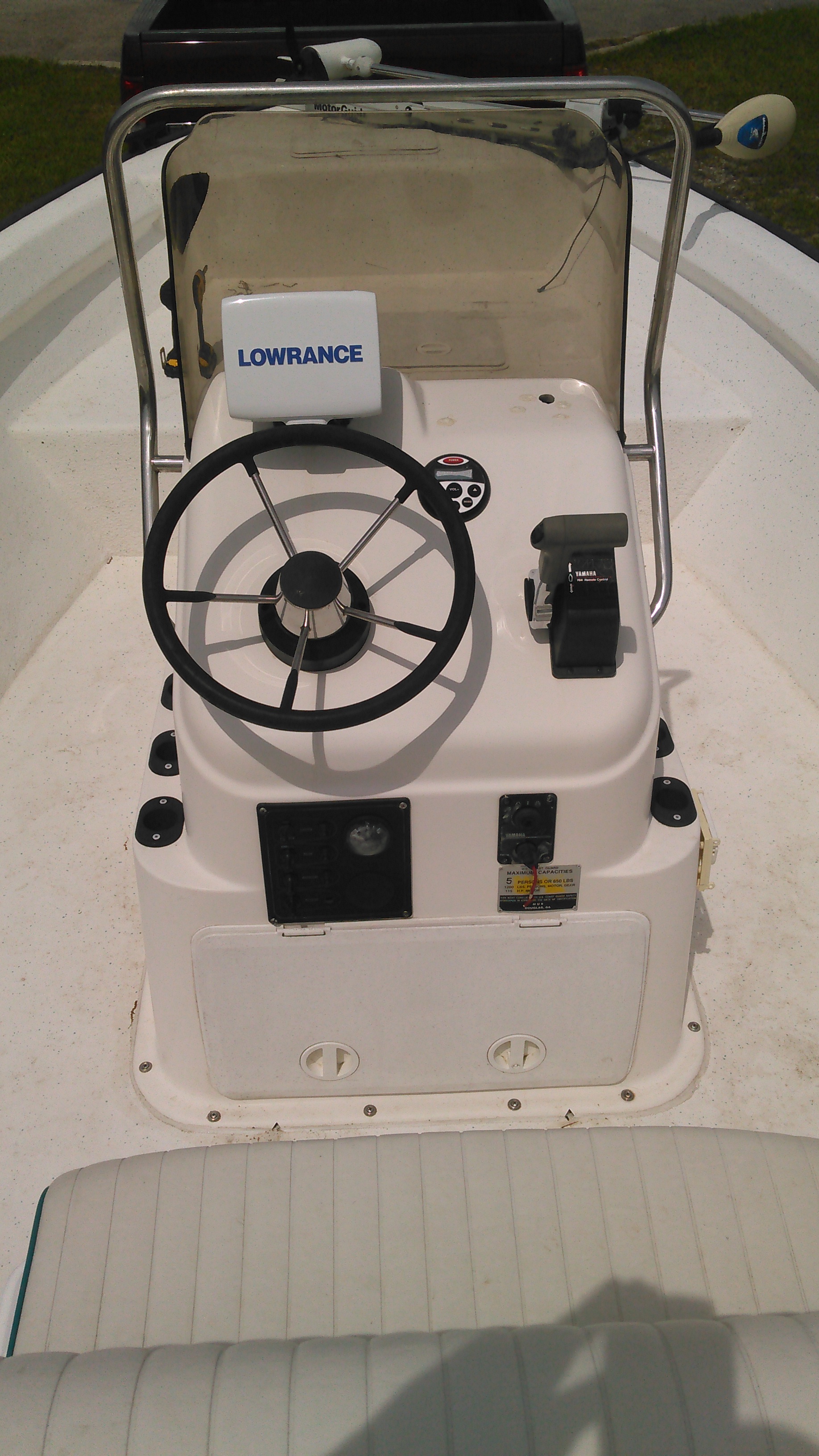 Finally able to post pictures! Thanks man....Looking to sell my 2002 Key Largo 180 center console. It's powered by a reliable and efficient 2002 yamaha 90 2 stroke (no oil injection). Has 71# great white trolling motor with 2 dedicated batteries. Dual purpose cranking battery. Rig is sitting on a 2002 magic trail aluminum ibeam trailer. All new electronics (2016).....bilge & live well pumps, AM/FM receiver w/ aux/usb inputs, 6" speakers, green LED accent lighting, Lowrance HDI 5 with down imager and gps. Boat is in excellent condition for it's age. I'm the second owner. Family is outgrowing the boat. Have a bimini for it as well. Asking $8500 obo