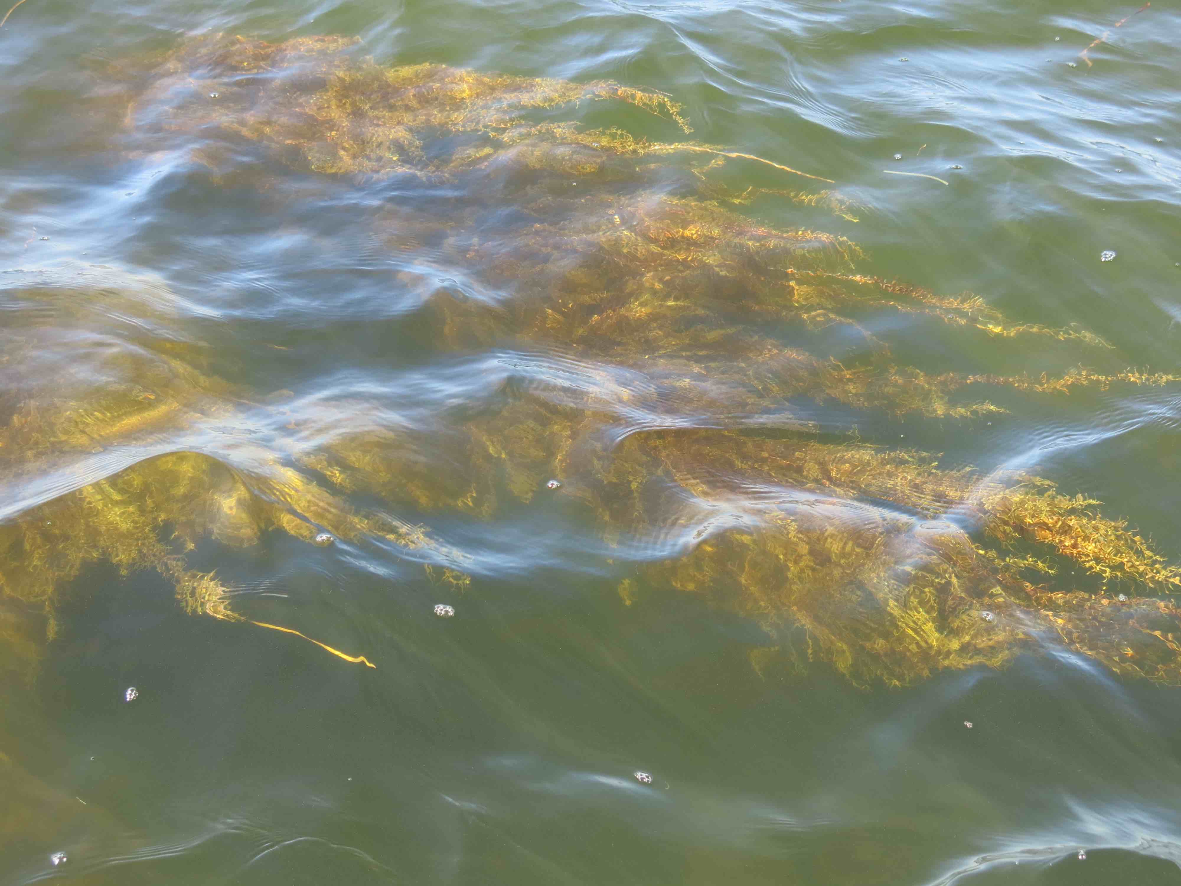 Rock grass is a form of sargassum that is found in local waters. The roots affix to limestone rocks and substrate. It can be found year-round in the tidal creeks or out on the flats, but really flourishes in the late summer/early fall before dying back down. It typically grows in large patches and the long wavy "fronds" often reach the surface or appear as mats on the low tides. It is excellent habitat for baitfish and the game fish use it for ambushing prey.