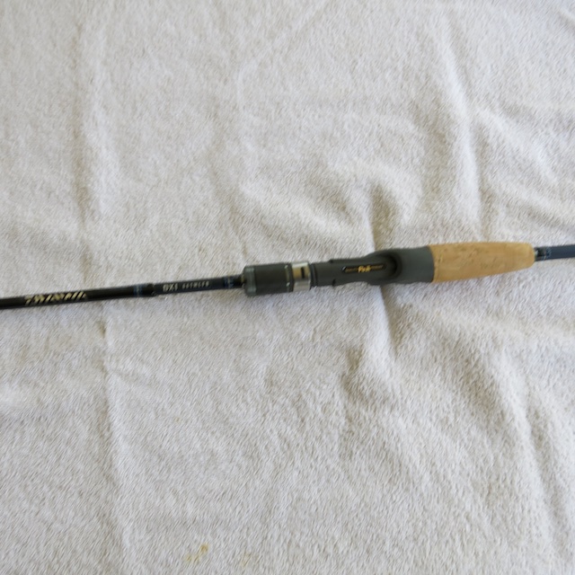 Used one time (without a mark or scratch) and landed several quality trout on it up to 24 inches. Super light and super sensitive. Graphite blank, split cork grip with butt cap, Fuji reel seat, hook-keeper and light wire guides. One piece, 6'6" rod length. Blue/silver guide accents. Would also make a good topwater/spinnerbait rod for largemouth bass.