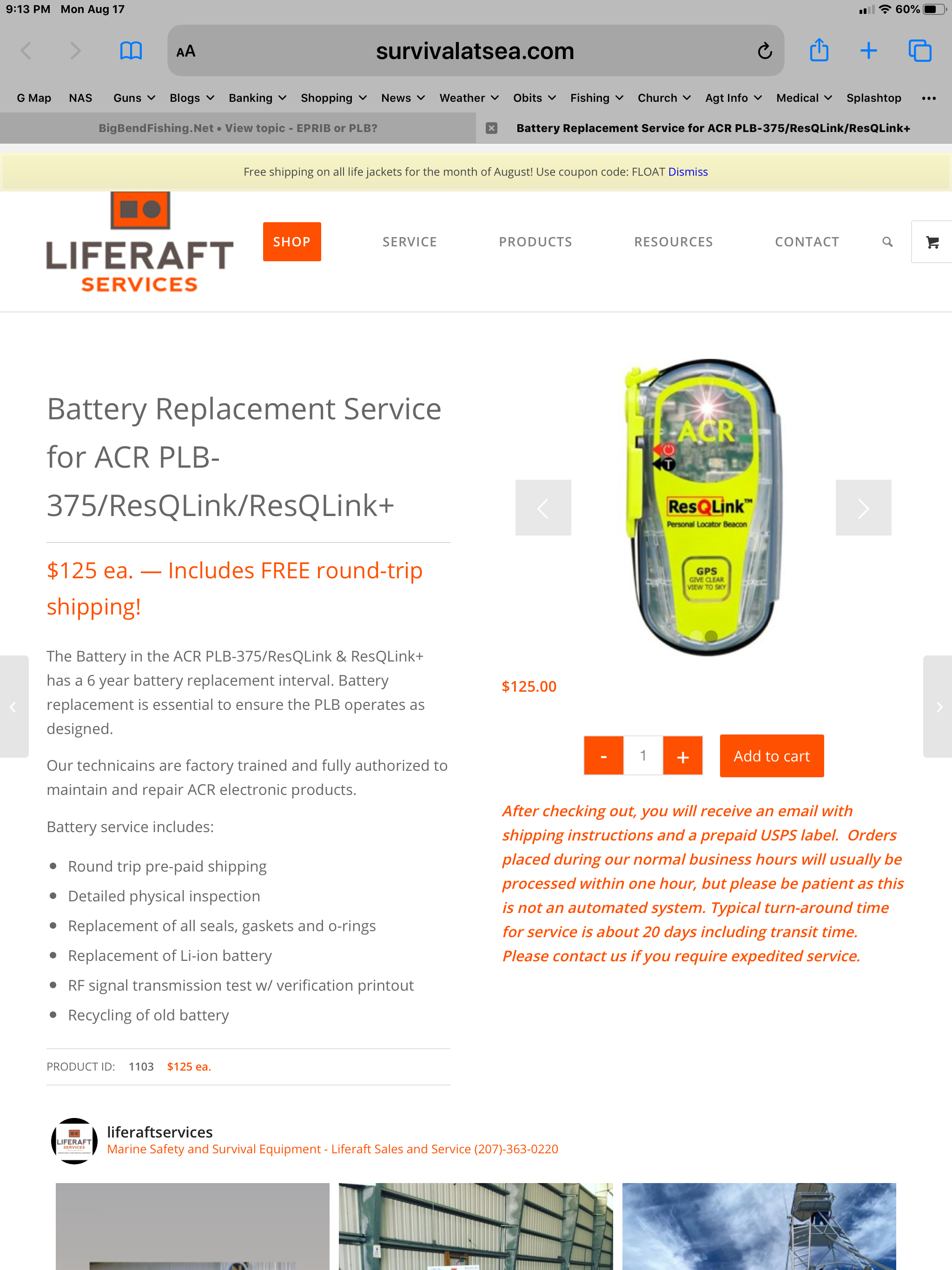 What I paid for mine when it was time to replace the battery. Of course pretty darn important to make sure it is waterproof going back together... EPIRB was about $270 for similar battery service.