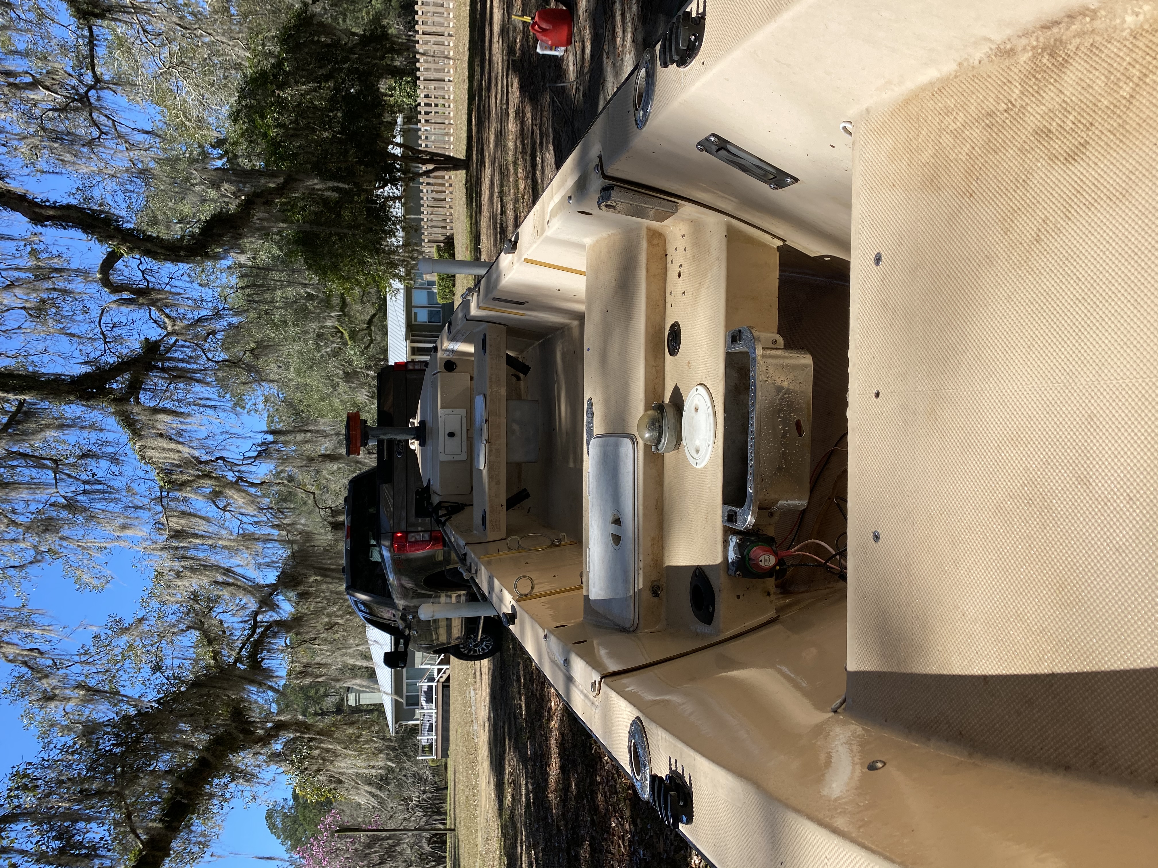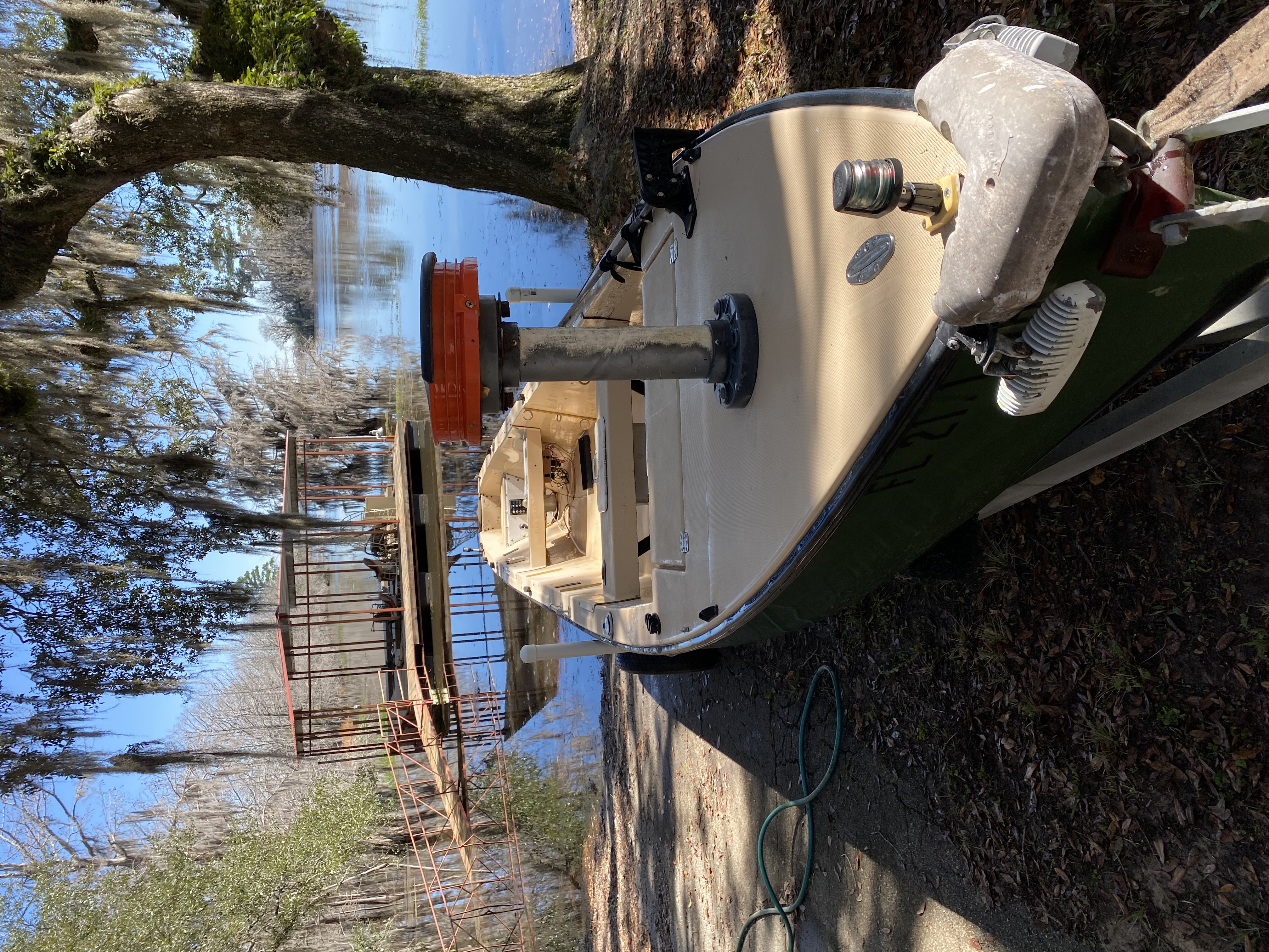 Larger than it looks in pictures! Was inherited by my wife from her father in 2017. I’m told he used it to duck hunt 10k islands area. I’ve seen it on water twice. The day we received it I ran it from Eagle harbor to the tip of Cape San Blas. My wife also ran it with two girls from my house on Lake Iamonia to the Fish Camp about a week later. It was too long to sit under the boat house, so I put it on a trailer and it has basically sat since. Hasn’t been run since 2017. Today I pulled the 25 hp, 4 stroke Yamaha that pushed it ~30mph and have plans for the motor. My MIL towed it from FT Lauderdale in 2017, but it really hasn’t been trailered since. Decent galvanized trailer. Switch panel with bilge, spot lights, nav lights, under water lights ,etc, but I can’t really say what may work at this point. Fairly nice stake out pole and clamp. Good storage. One of a kind!