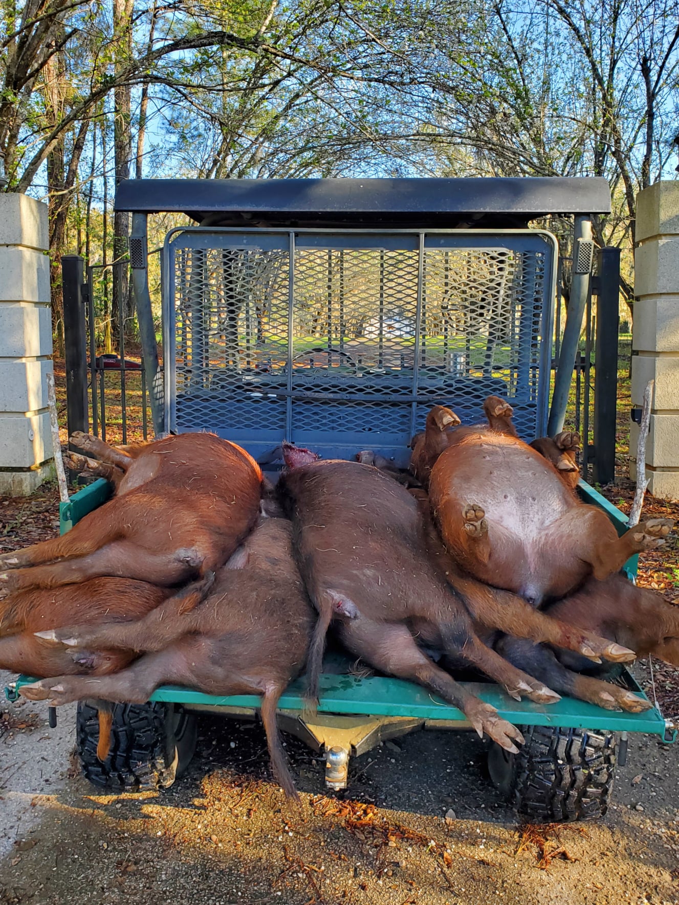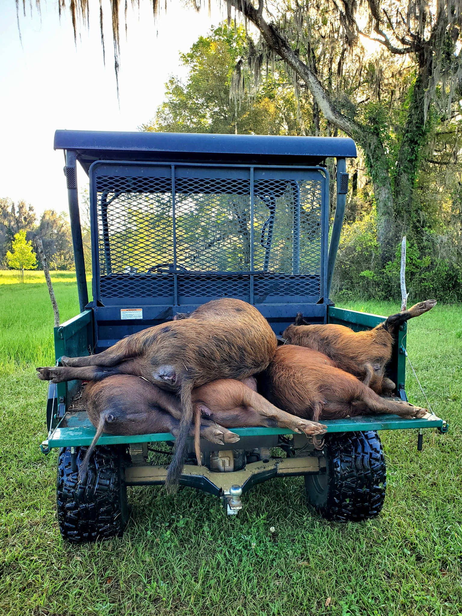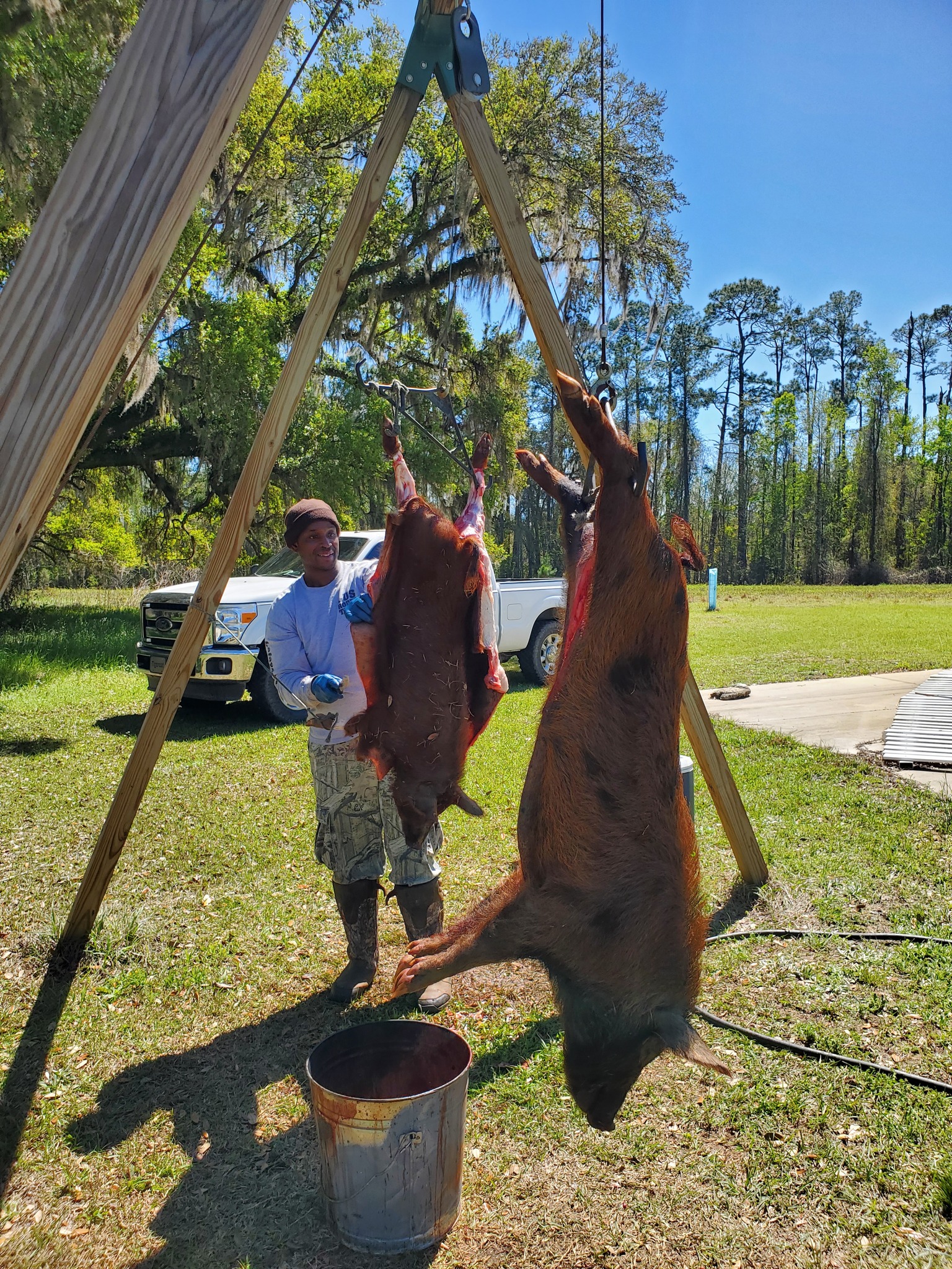 If I personally know you to be trustworthy, I'll even allow use of a skinning lift I built on my place -- otherwise, will meet you right at Highway 27 (Apalachee Parkway) close to the Highway 59 turn towards the Wacissa River, ready to help load hogs onto your vehicle.