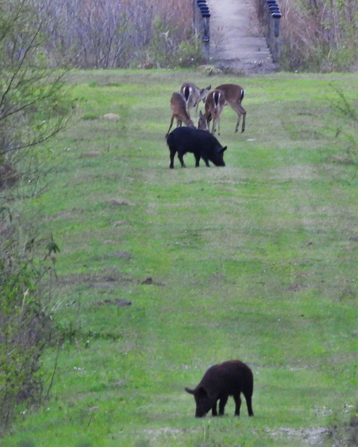 we kill them nearly daily here but i've never seen Deer and Pigs in the same area like that. deer typically always run off when they come out. pretty neat to see!