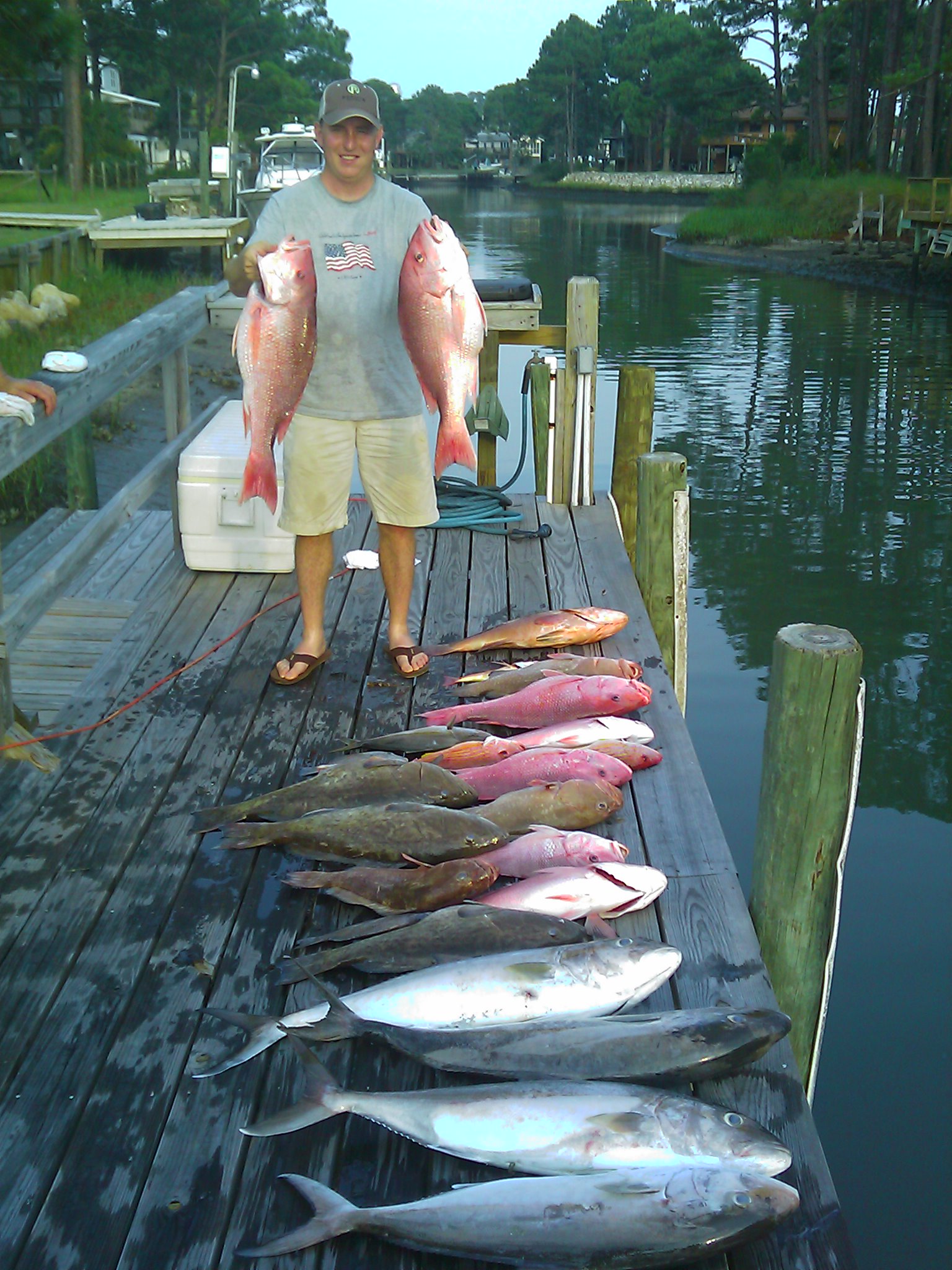 We were tired and ready to get back, thinking that we did not have anything that would make the board, we made the decision to head to home port, AP and fuel up and clean up. After the fact, we realized that we were close in the Red Snapper category. Had to settle for some cell phone pics at the dock of the catch.