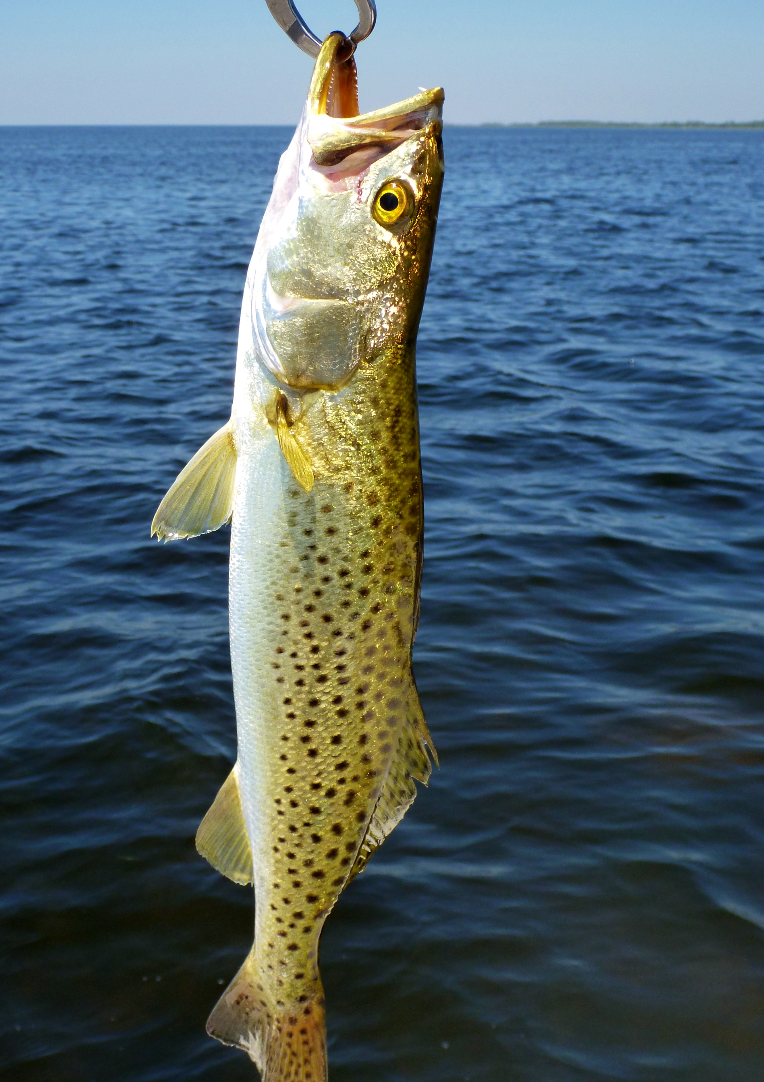 Picked up a trout or two along the way but the shocker of the day was having a HUGE spotted eagle ray cruise by us while we were in only 4' of water. See them offshore almost every trip but first time seeing one SOOOO shallow. It actually hung around and entertained us for about 15 minutes. Extremely cool experience.