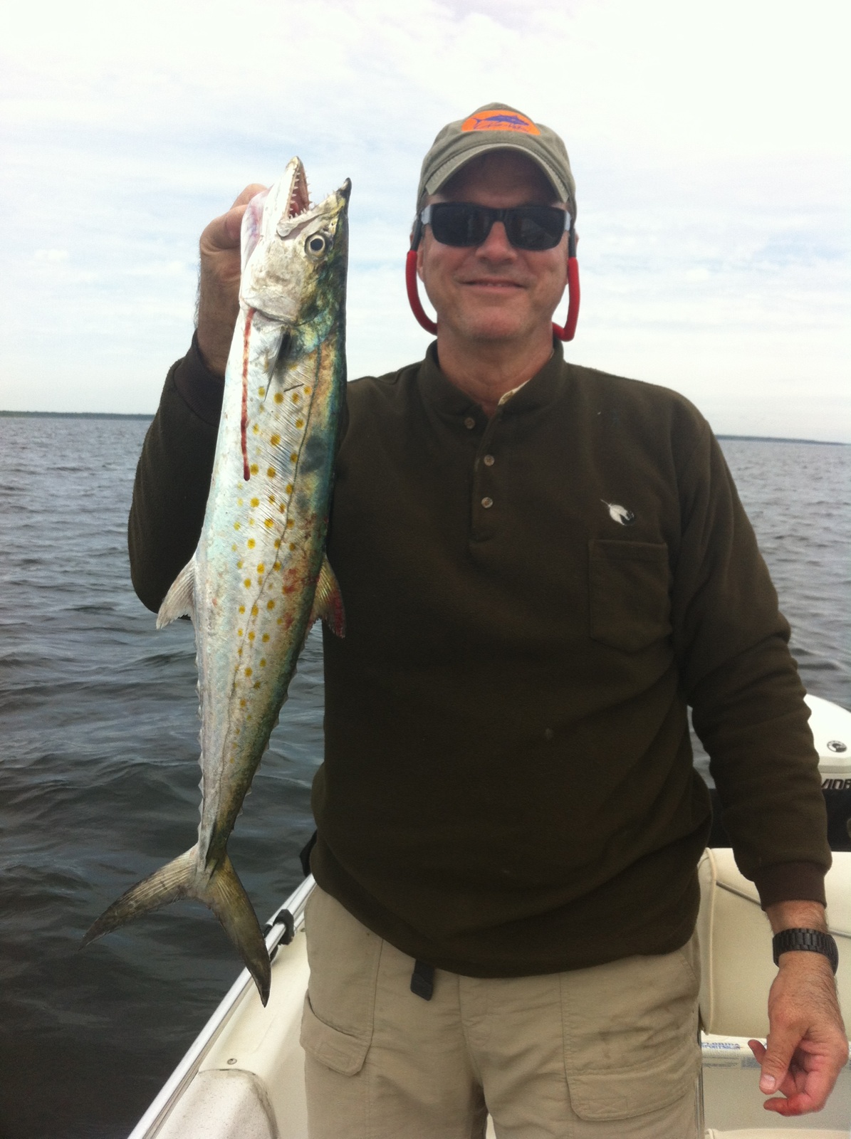 Saturday was a different animal. Poured down until 8:00 and air temp had dropped to 52 degrees. We nearly froze riding out. Bite had dropped off dramatically as water temp dropped into the 60s. We managed to pick up 12 keepers fishing hard all day. The spanish were active and we ended the trip with 12.