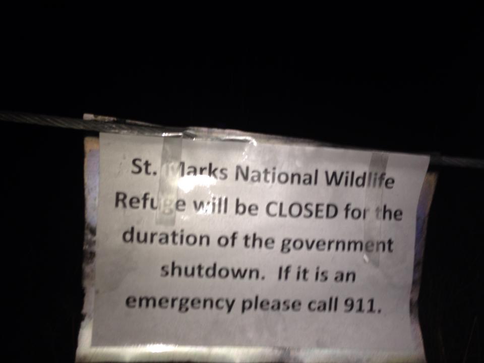 Tallahassee FL- Plans to go fishing, hiking, boating, or sightseeing at Saint Marks National Wildlife Refuge will have to be put on hold. National Parks are also closed during the partial Federal Government shut down.