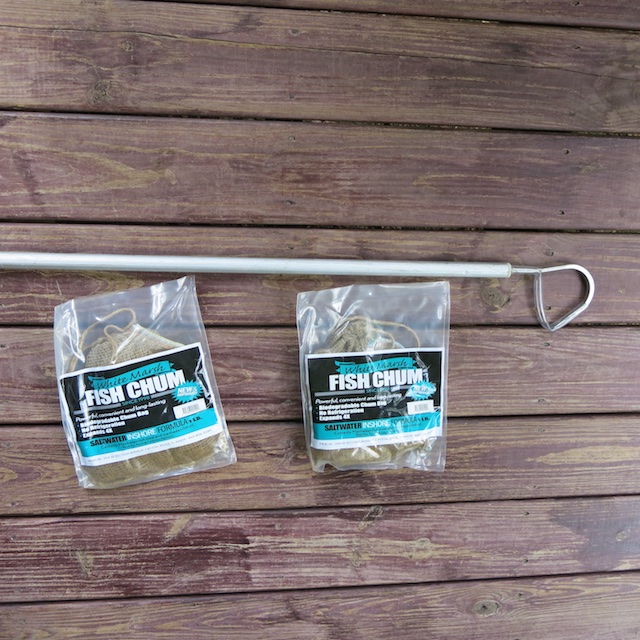 Also have a 3-foot aluminum gaff with hook keeper and nearly 5 1/2 pounds of White Marsh Inshore Chum pellets (four 1# bags and two 10 oz.). These are menhaden meal and oil in burlap bags that work very well in drawing bait and cobia/kings into the slick. The bags are all factory vacuum-sealed. Also throwing in a Shakespeare solid fiberglass fish billyclub. It's a great persuader on a green fish and does wonders busting up bags of ice, too.