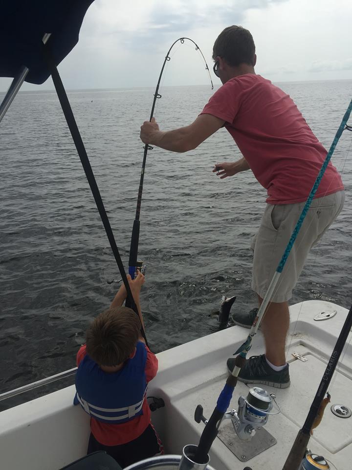 Goal was to catch fish so we stopped at the first school busting bait and caught the heck out of lady fish Gabe caught several all by himself and reeled in most of ours