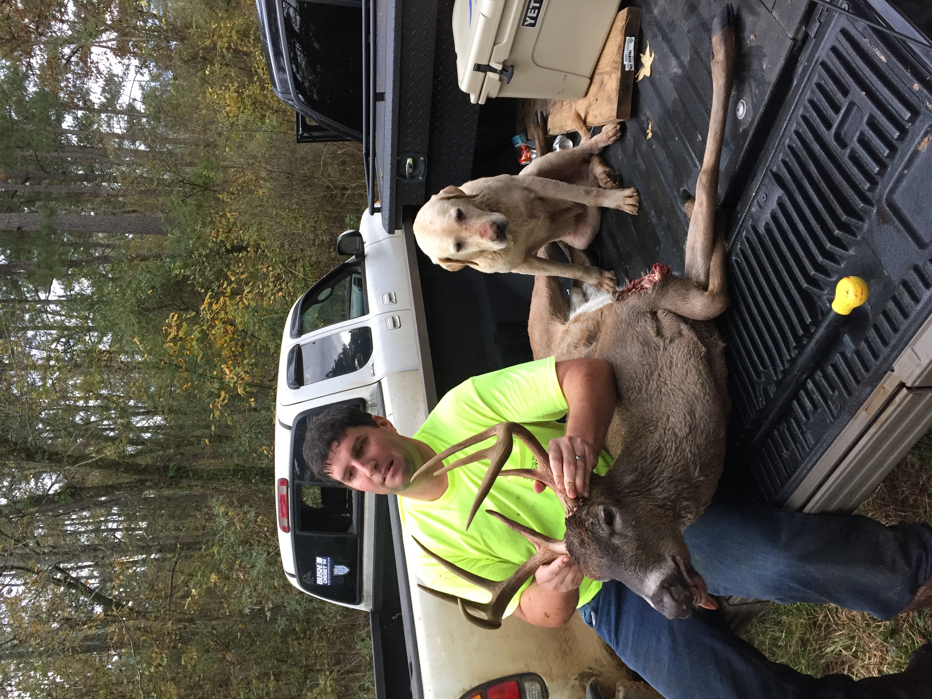 I drove back to my house to pay pentence to my wife while I watched the Georgia game. I looked up trackers trying to find one available. Talked to many but all were working. Finally found Pat Cleveland but he had a Lab named Speck. Speck didn't track blood only wounded animals.