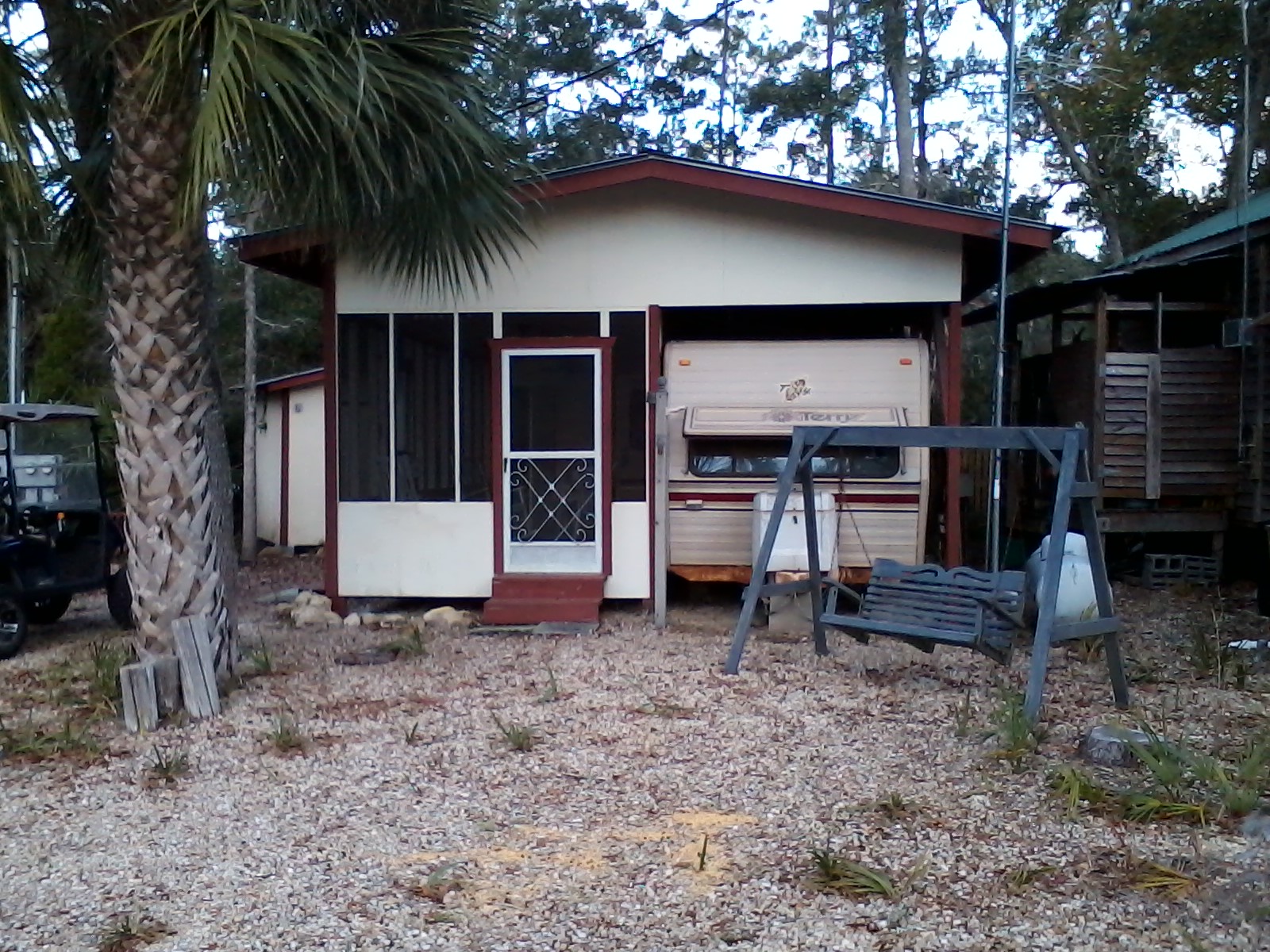 sale one of my places in Econfina it is a 1986 RV trailer with a cover that cover the trailer and porch front porch with a ex bedroom off the porch