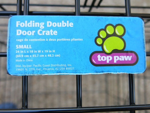 Top Paw Folding Double Door Dog Crate for sale. This is the small version (24 inches long x 18 inches wide x 19 inches high) with a black electro-coat finish, MAXLock double doors (one end, one side) and folds up for easy storage. The crate is in excellent condition with no scratches or dings. Perfect for crate-training a puppy, permanent crate for a smaller dog or for transporting to vet office, trips, etc.