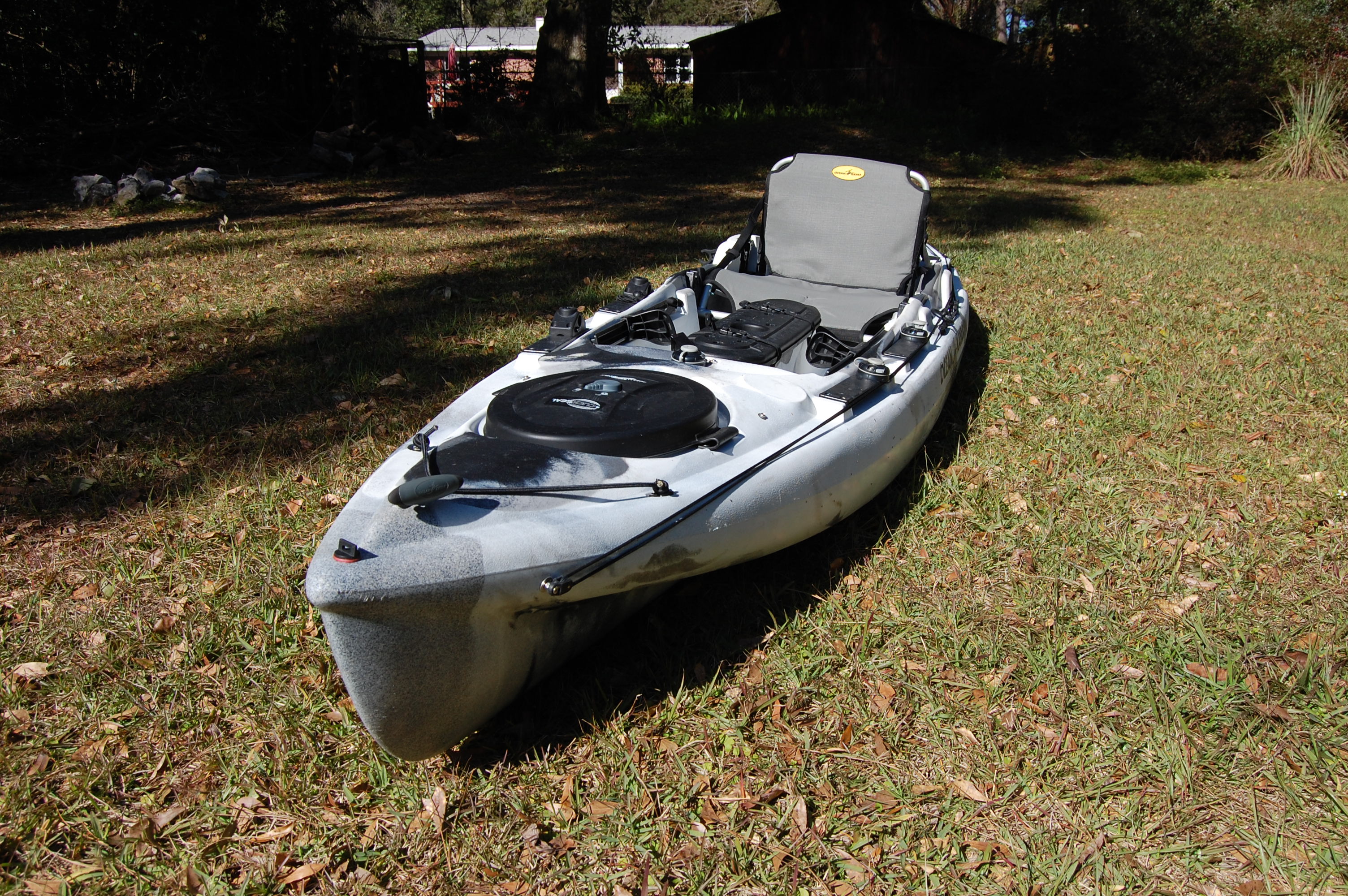 Ocean Kayak Big Game Prowler II. Has rudder kit (rudder cables in excellent condition with no rust), five rod holder bases: two for Scotty, and three for Railblaza (rod holders not included), and anchor trolly. Boat is in excellent condition and well cared for. Retail is $1,300 plus rudder kit which runs $225 through AKC. Selling price is $800. This is a perfect kayak for inshore fishing and creeks. Very comfortable and stable (I can easily stand in it) and aptly described by Ocean Kayak as a "battleship".