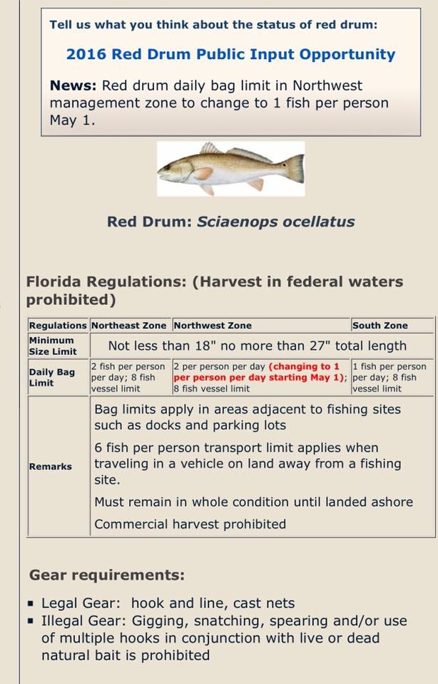 FWC has come a long way and has surpassed the feds in data collection and management science that allows them to be on top of maintaining stocks of game fish like Red Drum. If the data is showing over harvest in the NW then they are doing the right thing to protect the fishery. The recent actions the FWC has taken on Red Snapper is a good example on management based on the most accurate data available - compared to NOAA. The good thing too is that the FWC is not against raising the limit when data supports that action.