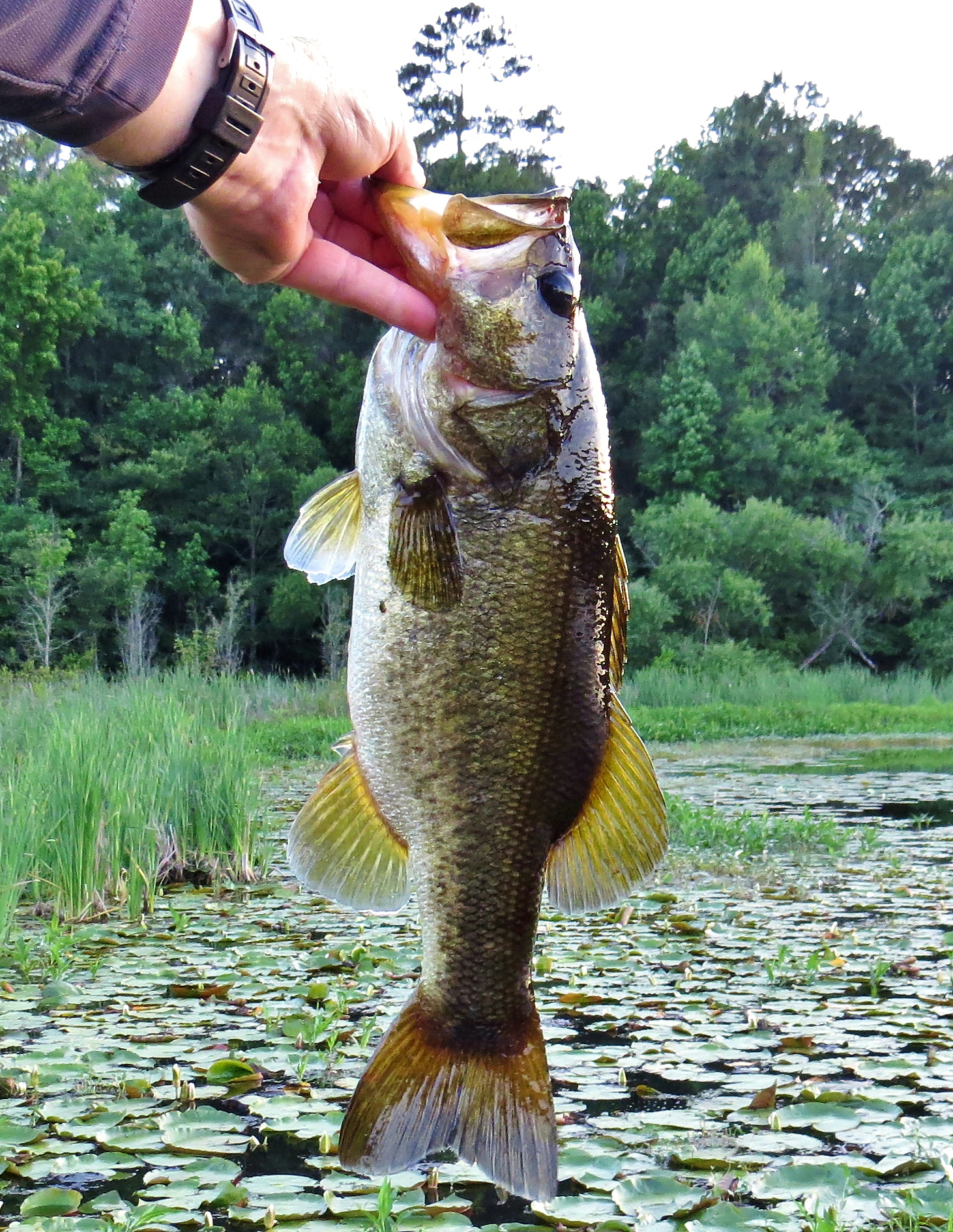 Caught this one from my dock out of the middle of the lily pads behind it...