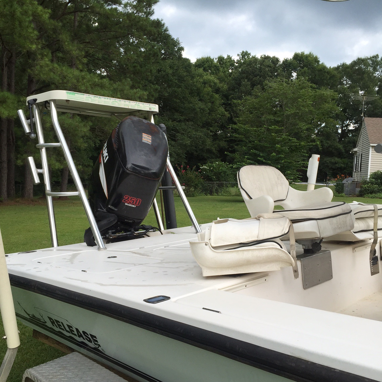 I removed the t-top, poling platform power pole and trolling motor.