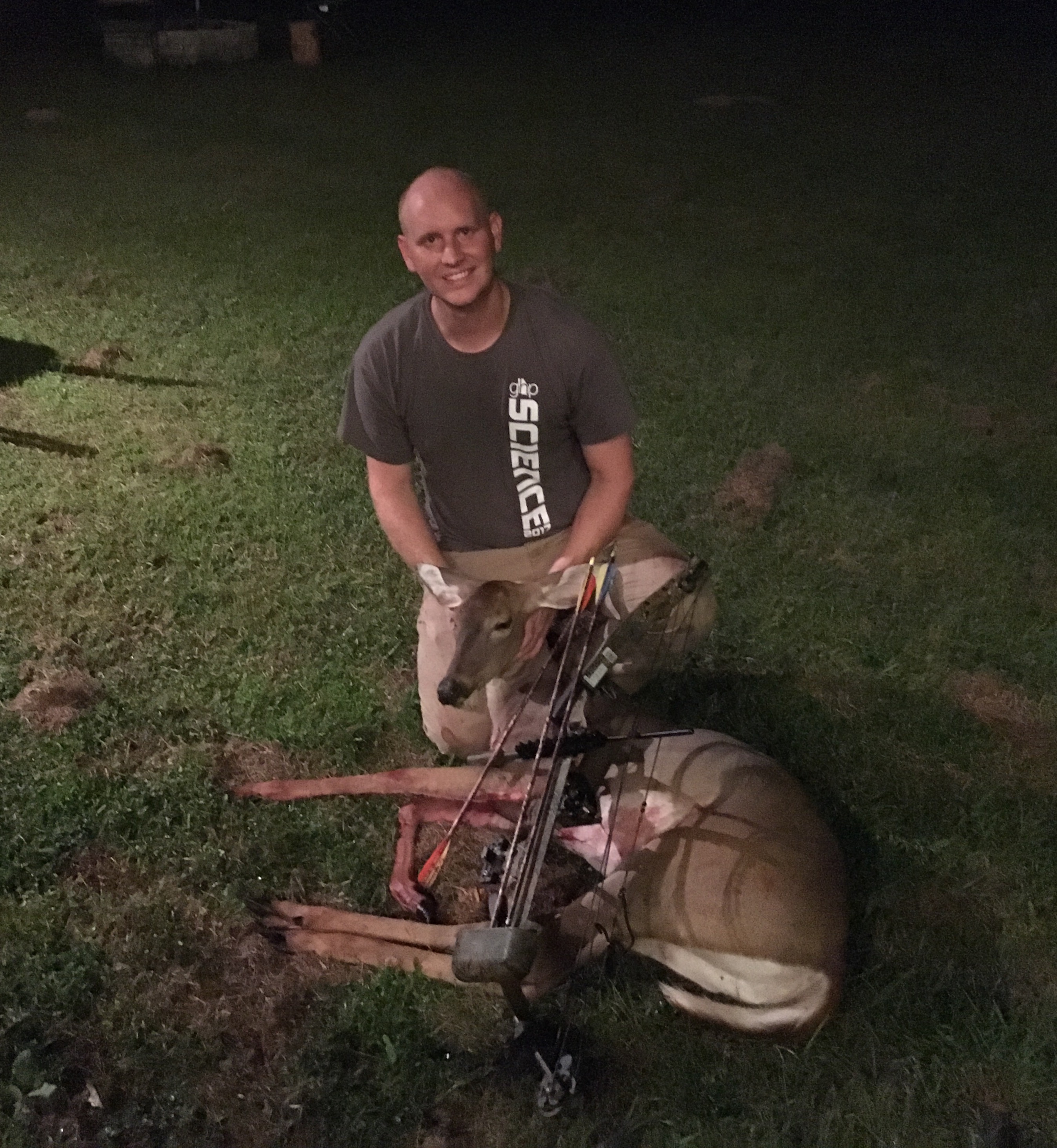 Shot my first deer with the bow and arrow. Been wanting to shoot one with the bow for several years, and finally managed to get a shot today. Got it quartered and on ice, and I get to fire up the grinder early this year!