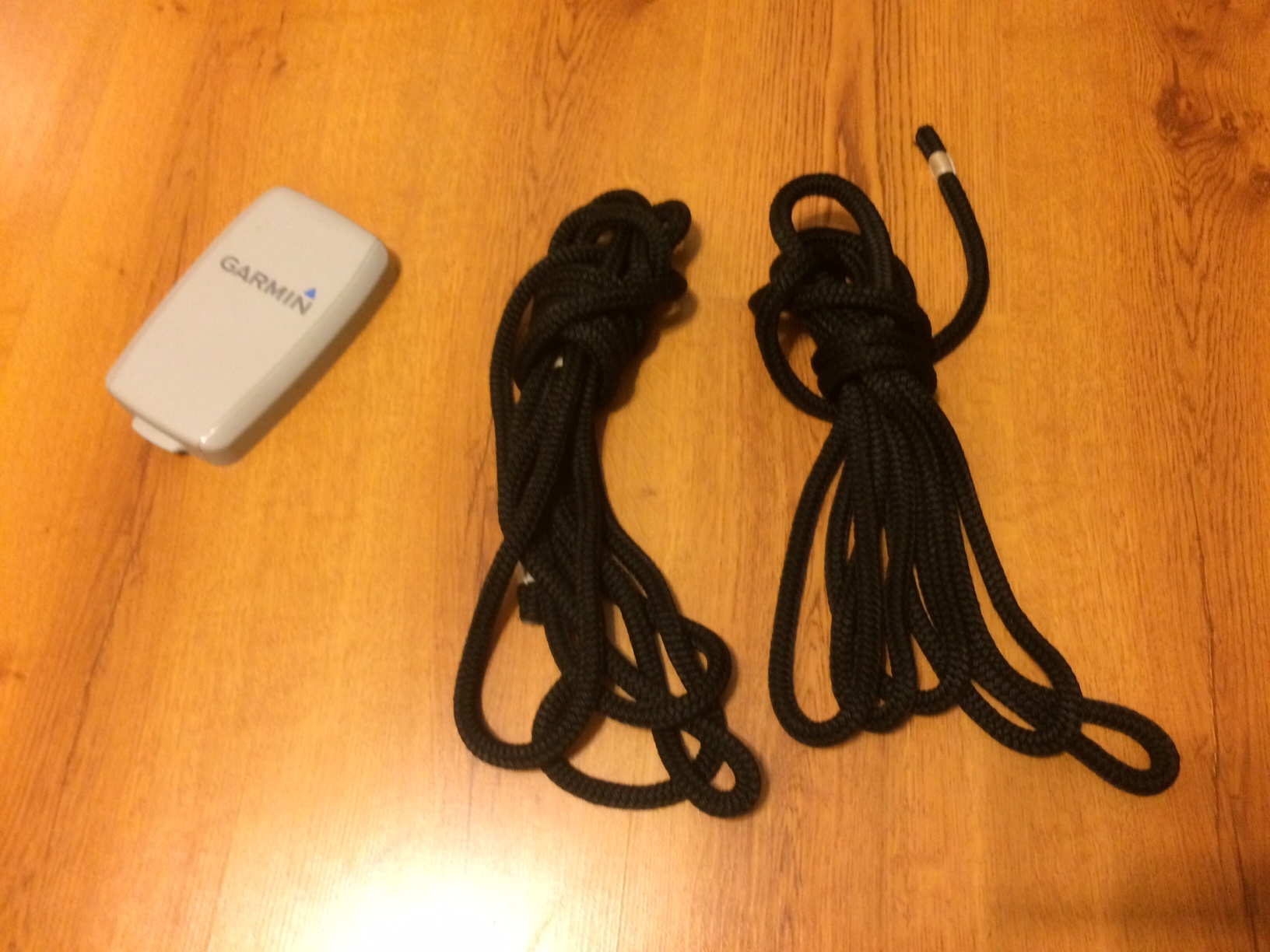 (2) 3/8-inch braided black nylon dock lines with 12-inch eye splice in one end and 15 feet long. Very good condition.