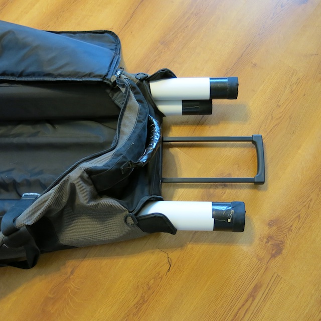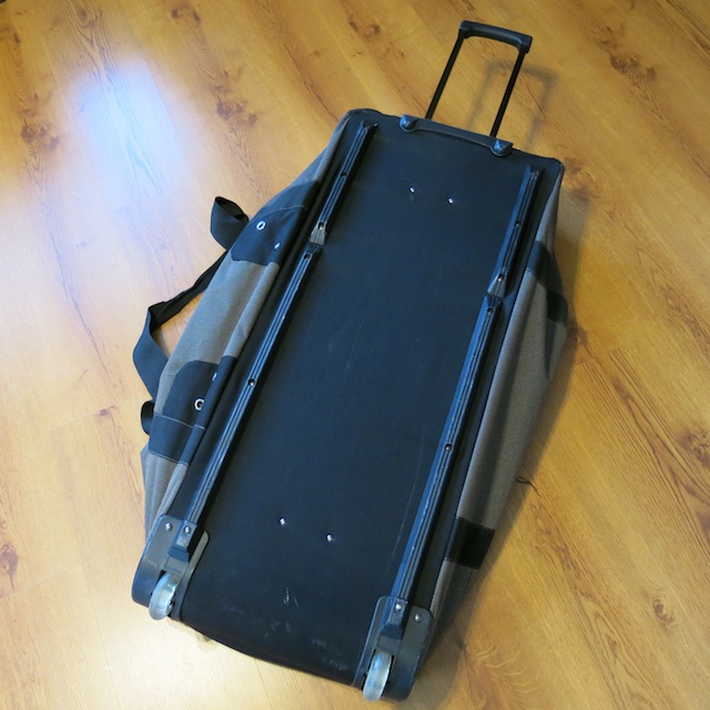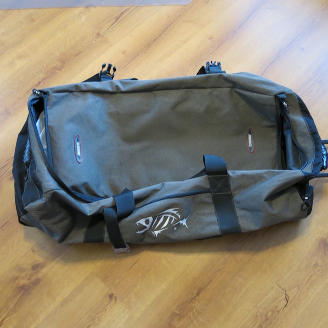 Up for sale is this pre-owned G. Loomis Angler Roller Bag. Made with heavy nylon fabric with poly wheels and a sturdy plastic bottom, this rugged piece of luggage is made for adventurous anglers. The spacious interior has enough room for clothes for a week, plus internal tubes to store up to three travel rods (two with 3.25 inside diameter and one with 3.75 inside diameter). An internal bag can be used to store wet items while a zippered outside pocket will hold travel documents. In addition to a retractable handle to roll easily through airports, it also has an ID pocket, two handles and external nylon straps with snap-locks to keep everything secure. All zippers are intact and there are no rips or tears in the fabric. The rubber grip on one of the handles (on end with pull-out) was damaged by a baggage conveyor belt and has been repaired with Gorilla tape. The nylon webbing is intact. Otherwise the bag is in excellent condition. Size is 36 x 18 x 12