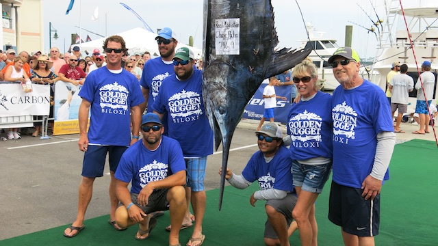 After a pursuit lasting more than a decade, Team Reel Addiction finally topped the field of 117 boats to win the 2018 Mississippi Gulf Coast Billfish Classic. Angler Chase Pate of Pensacola, Florida, Capt. Scooter Porto, owners Rocky and Laurie Jones, and mates Zach Taylor, Seth Brennan and Nate Dennis boated a 796.9-pound blue marlin after a 30-minute fight Saturday morning. The largest marlin of the week earned the team $405,705 for the top tournament award and optional entries. The overall tournament prize money was nearly $2.2 million.