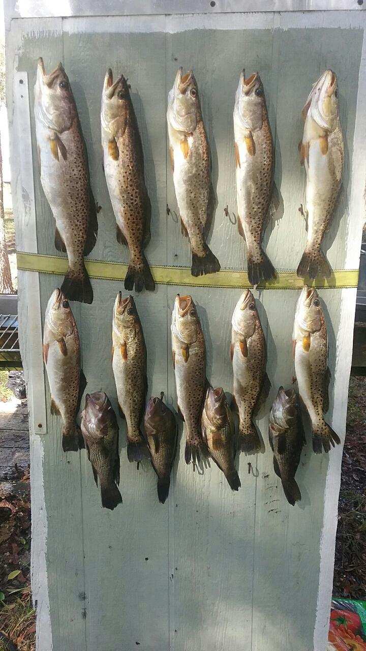 Not enough water to get out so we busied ourselves with catching pin fish. Finally got out the creek and headed north. First stop with in five minutes my wife landed a nice eighteen inch trout using cut bait (shiner tails.)