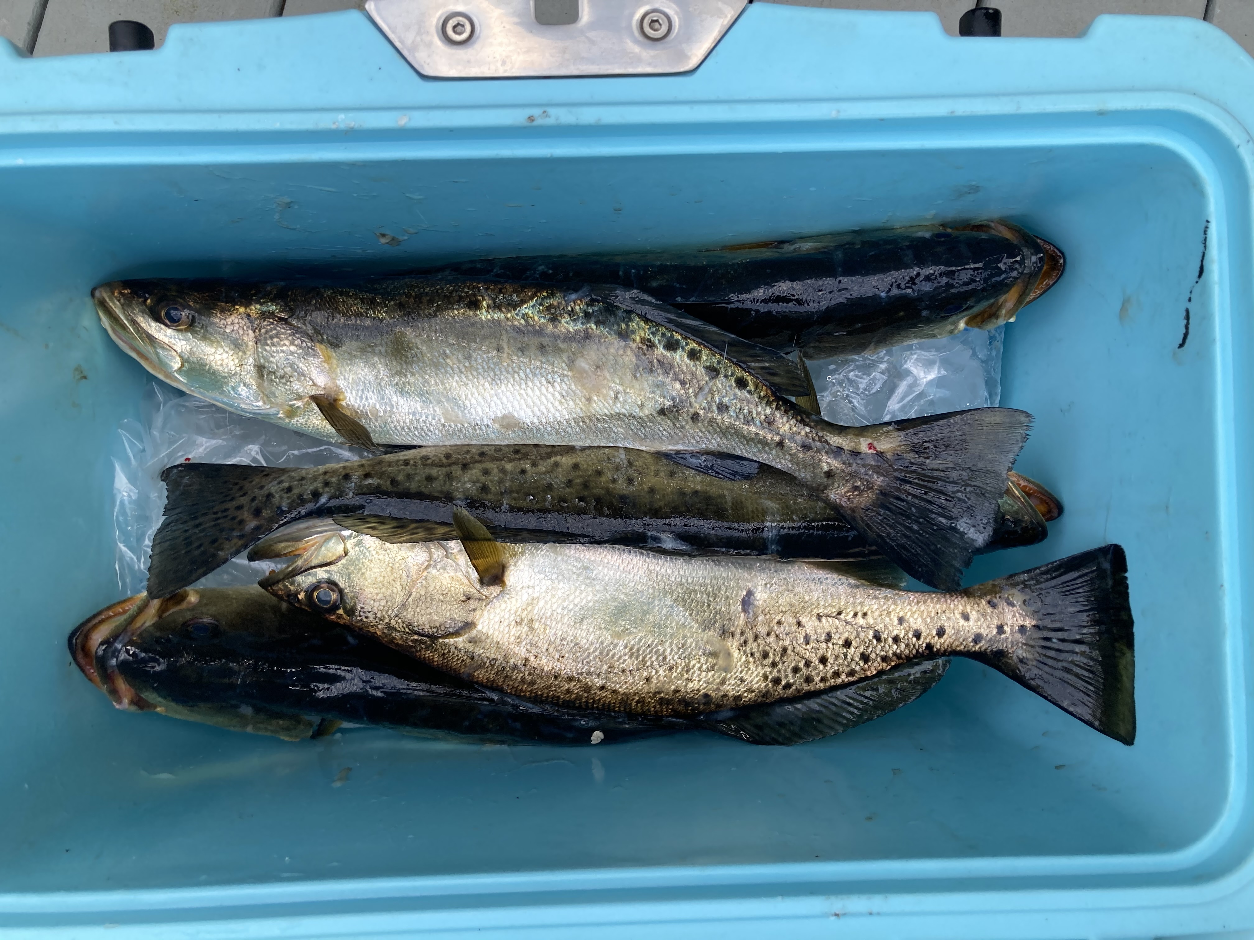 As for bait, yesterday the trout were schooled up in the St Marks and in a feeding frenzy about 2 pm. You could catch them on almost anything, but a gray thick Gulp minnow on a chartreuse jig head caught one on every cast. Mostly 13-14 inchers in the school, but a few bigger ones.