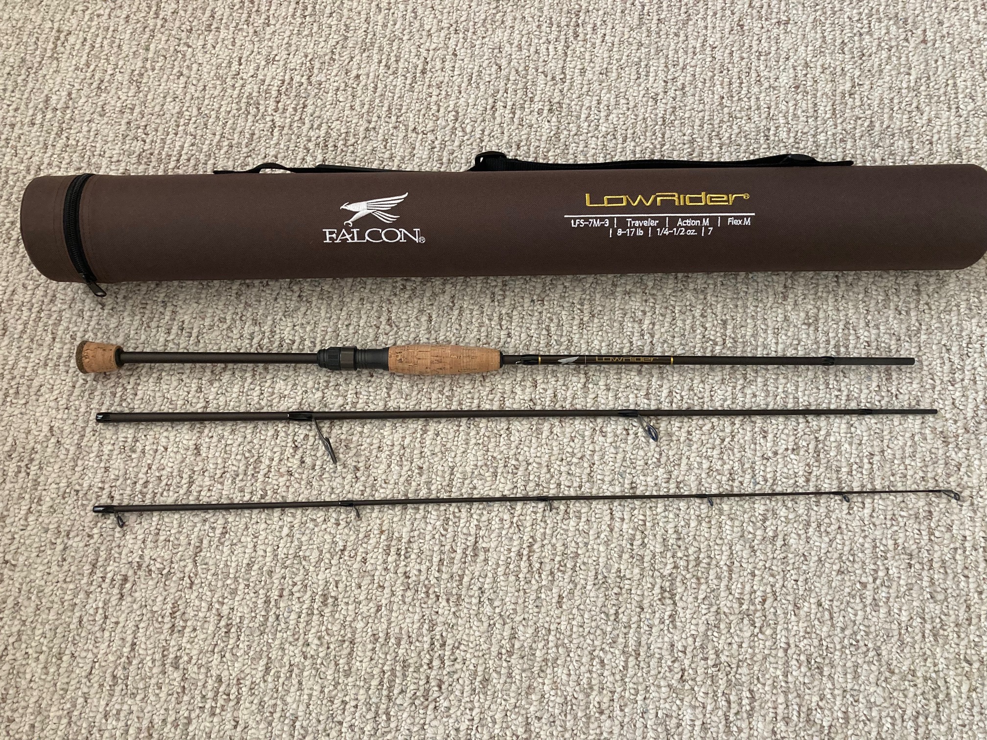 New, without tags, never used, selling one Falcon LowRider Traveler spinning rod. Ideal for air travel, backpacking and camping trips. Excellent option for redfish, snook, smaller tarpon, permit, bonefish, snapper, salmon, stripers, blues and bass.