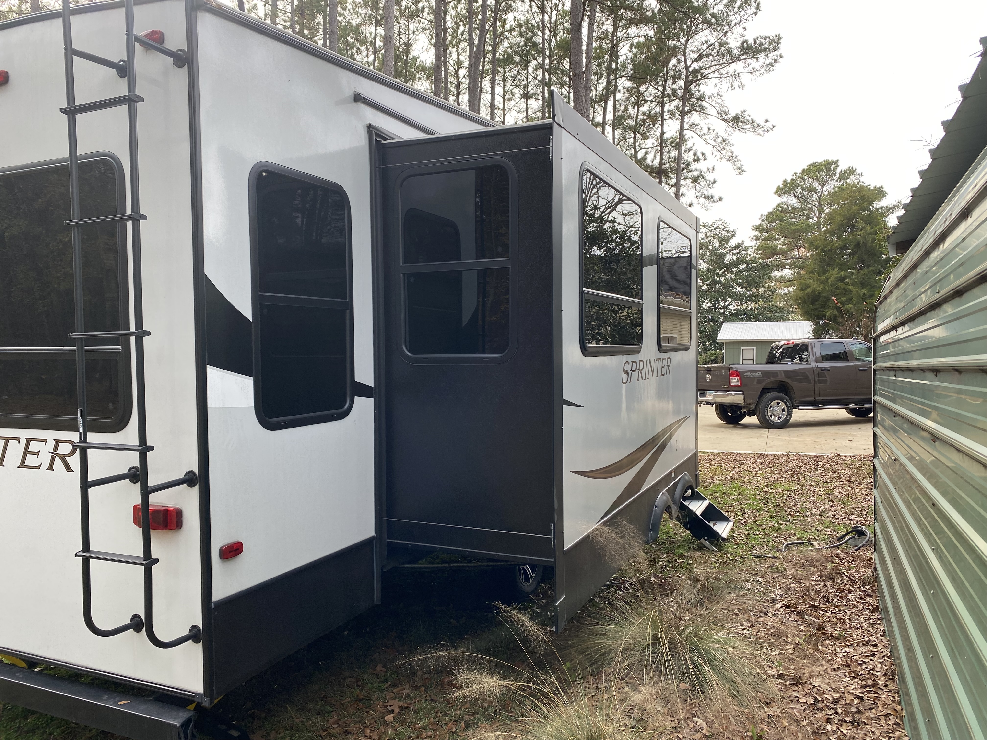 It was pulled from there to our home in Georgetown, GA. and from there to Carrabelle where it stayed for the months of October and November 2021. We stayed in it for maybe 6 nights and days while it was there. We pulled it home at the end of November and it's been in storage since then. I have attached a PDF of a floorplan and description for a 2022 model just to show what the floorplan is and what the standard and options are. Ours has all of the same things. The only things that I know are wrong with it are: back right leveling jack is bent. It didn't hamper us using it but it is bent. On the bumper in the back, the right side end cap is missing. The shower track is on backwards. We installed a shower curtain to use to keep water from coming out of the shower. There is also a recall on it and we are in the process of taking it back to Ashley to get that done. We will have the shower track repaired at that time.